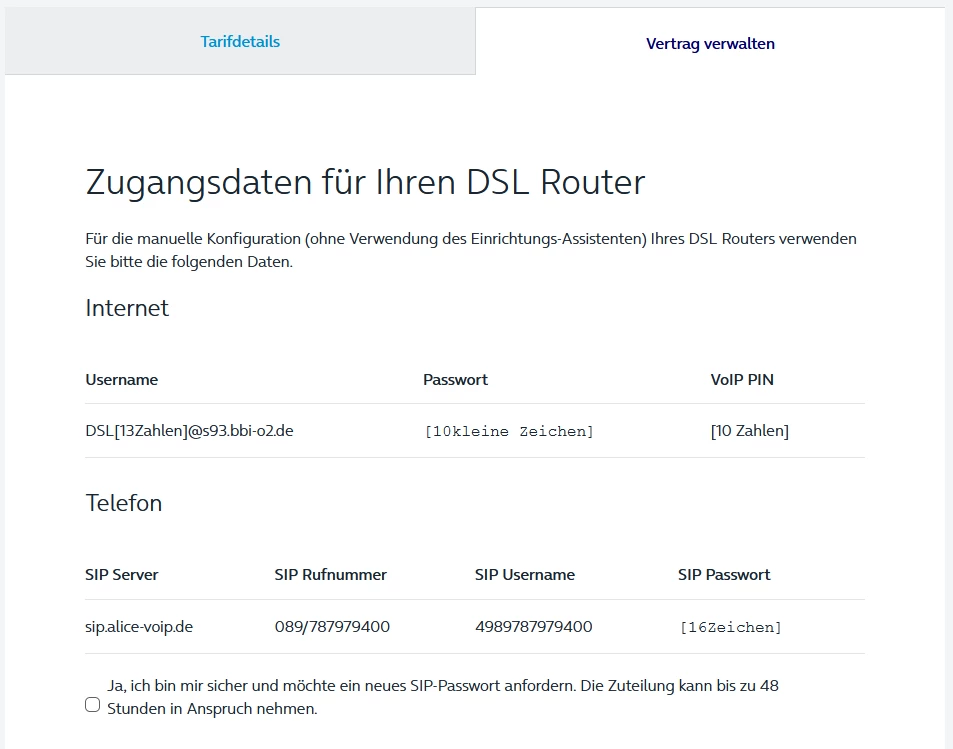 die Passworte für SIP stehen in Mein O2.