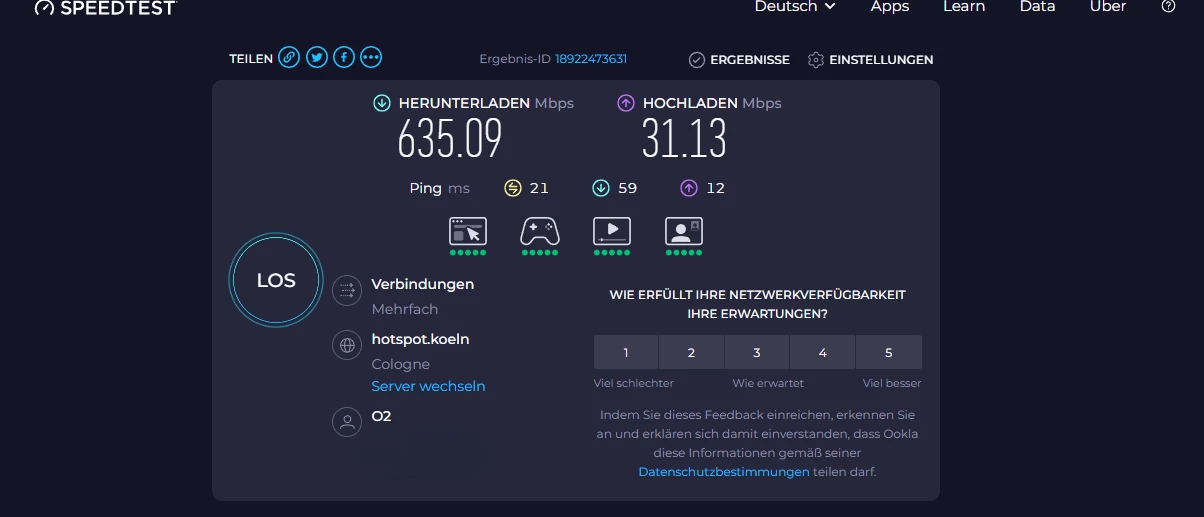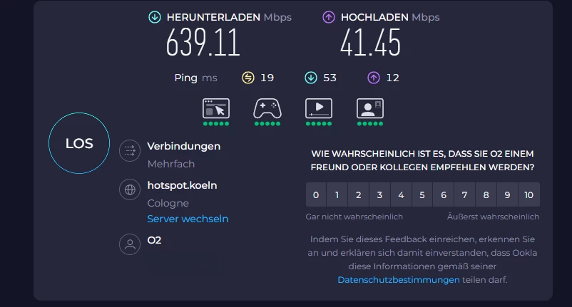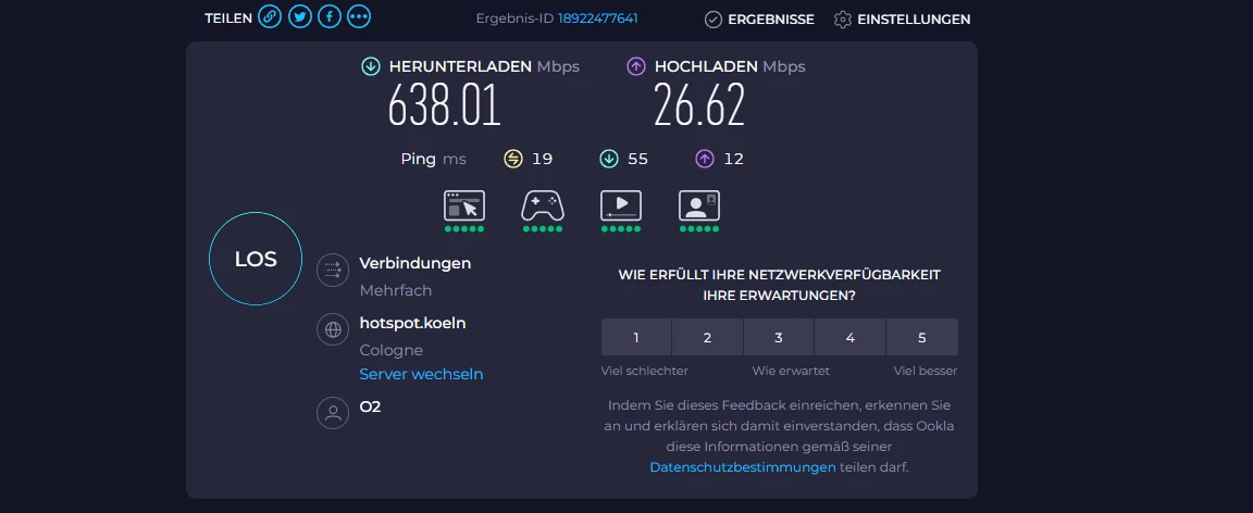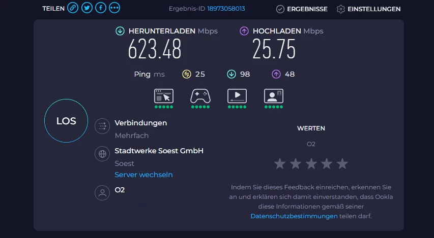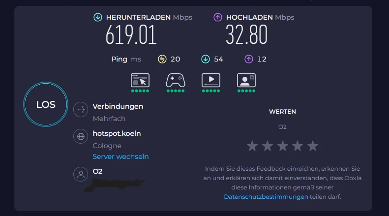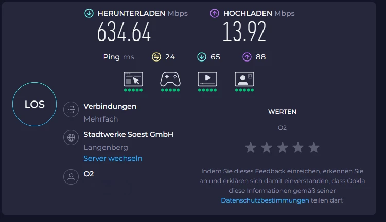 Neuer o2 Home XL 600 anschluss Upload schwankt und erreicht nie die vollen 50mbps