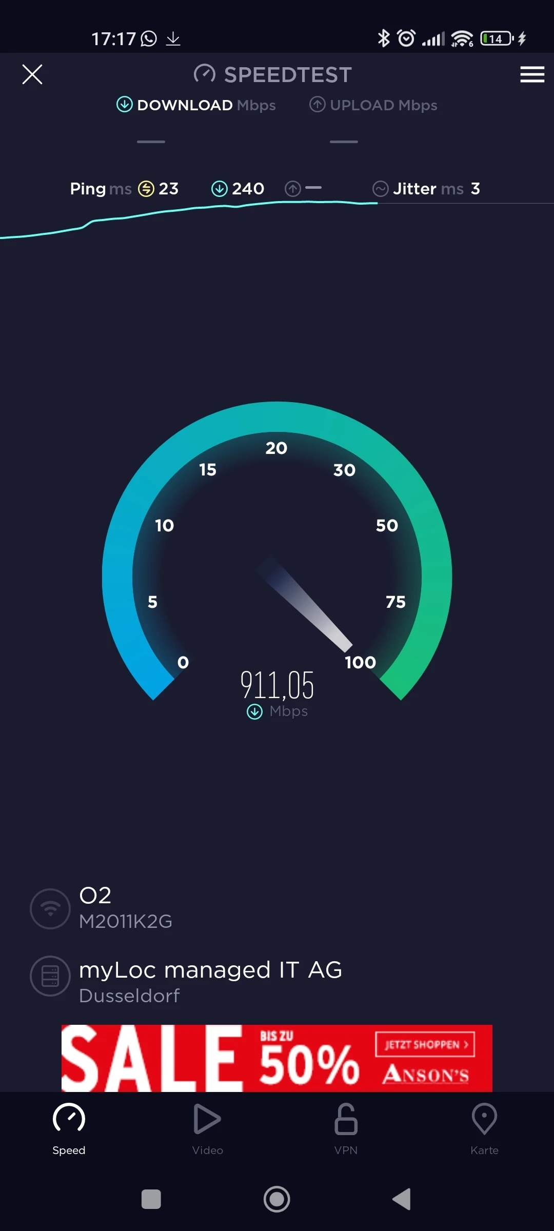 Hallo, ich habe den Router trotzdem angeschlossen und bekomme 1Mbit Internet, siehe Foto.
