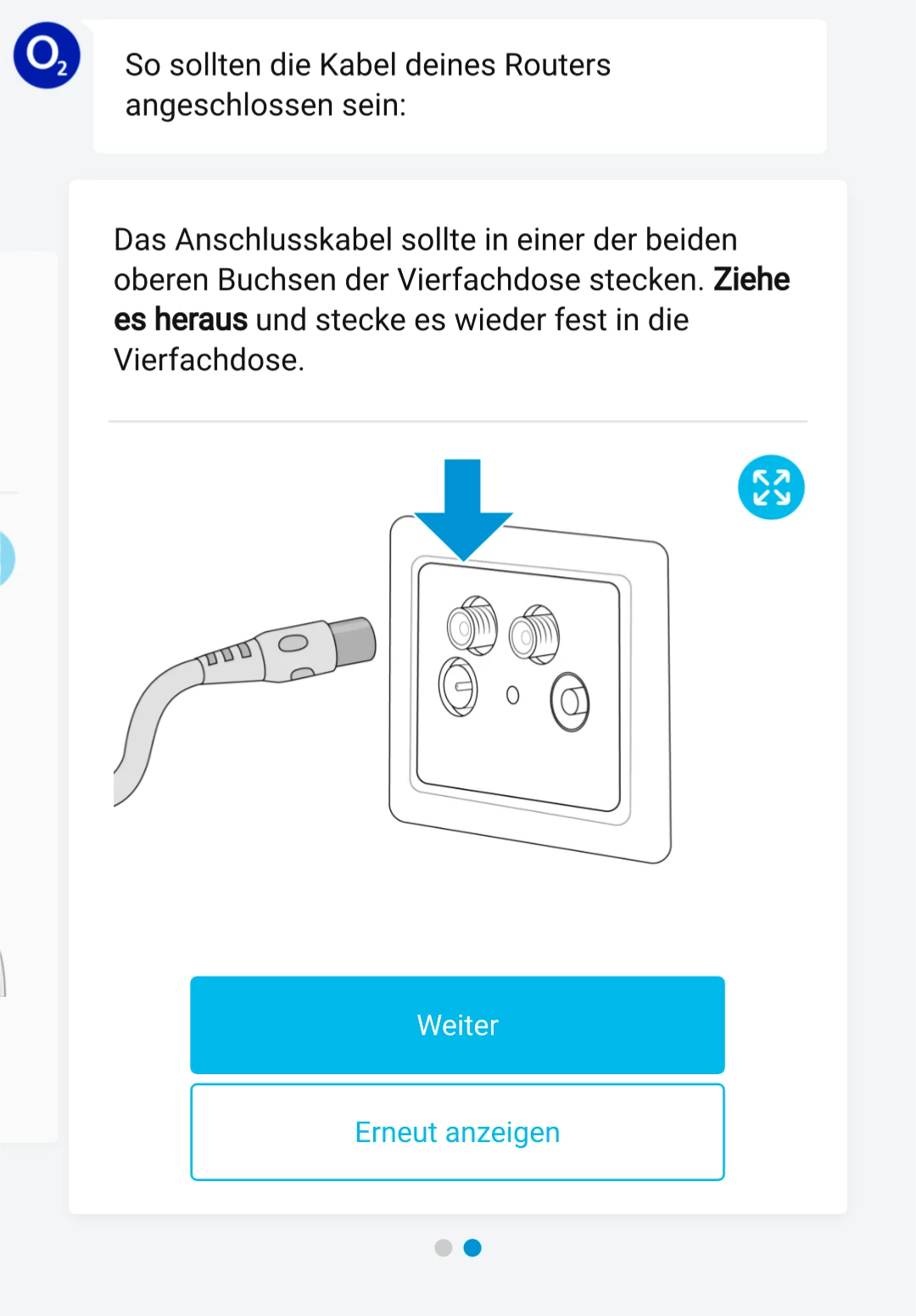 Am nächsten Tag versuchte ich über die O² Service App Schritt für Schritt meinen Router zu konfigurieren. Da aber keine Internetverbindung zur Verfügung stand konnte ich die Konfiguration nicht fortsetzen. Der zweite Schritt war den O² Kundenservice anzurufen, um mein Problem zu schildern. Nach mittlerweile 4 Anrufen und zwei Ticket Erstellungen von O² ging das Internet immer noch nicht. Nach dem zweiten Ticket wurde mir mitgeteilt, das die Störung behoben ist, aber es funktionierte immer noch nicht. Nach 2 Tagen ohne Internet und 10 Versuchen über die O² Service App meine Internetverbindung herzustellen blieb erfolglos. In der Beschreibung und Konfiguration der App wurde mir bei einer Anschlussdose mit 4 Anschlüssen angezeigt, dass ich das Koaxialkabel direkt in den Data-Anschluss stecken sollte ohne den Multimedia-Dosenaufsatz. Da mir O² einen Multimedia-Aufsatz für eine Anschlussdose mit 2 Ausgängen zugeschickt hatte, ging ich davon aus, dass ich diesen Aufsatz nicht brauche und mir die Service-App dies auch bildlich und schriftlich erklärte. Ich habe nach einer gewissen Zeit einfach die zweier Multimedia-Dose auf meinen vierer Anschluss aufgesteckt, obwohl es eigentlich nicht passte. Die Multimedia-Dose steckte nur in einem Data-Anschluss. Der zweite Data Anschluss liegt auf dem Plastik der Anschlussdose der Wand. Nach einem Router Neustart hatte ich von einmal Internet und alles funktionierte. Die Schlussfolgerung war, erstens schickte mir O² eine falsche Multimedia-Anschlussdose, obwohl ich bei der Bestellung eine vierer Dose angab. Zweitens ist die Beschreibung der Service-App für einen Ausgang mit vierer Anschluss Dose total falsch beschrieben. Von O² Seite kam bisher auch kein Entgegenkommen zwecks Ausgleich, für die Zeit in der ich kein Internet hatte. Außer, dass mir der O² Kundenservice jetzt die richtige Multimedia-Dose zukommen lässt. Ich bin nicht bereit den Ausfall zu bezahlen, da es nicht mein Fehler war. Darum bitte ich sie, das Aktivierungsdatum bzw. Bereitstellung von meinem Anschluss auf den 22.01.2025 zu ändern.