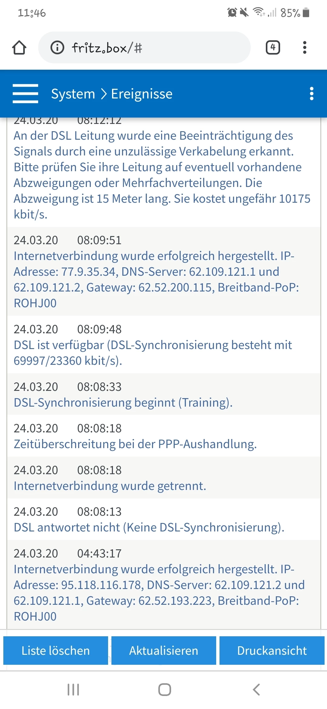 Haben seit 9.3.2020 laut Vertrag 100 Mbits. In der Frittbox standen maximal 85 im Download und 30 im Upload. Es kammen aber nur 71 an. Von Anfang an standen bei den Dsl Informationen 116000 Kbits bei DSLAM Datenrate Max. Daraufhin habe ich bei ihnen angerufen und eine Kollegin meinte das sie ein ticket macht. Daraufhin hab ich die Sms bekommen das das Ticket geschlossen wurde und nichts ist passiert. Das krasse ist aufeinmal ein paar tage später waren der download auf 80 begrenzt in der Fritzbox und auf 27 im Download wie ihr sehen könnt. Das Freche ist das ja am Anfang sogar 116000 Kbits da standen und sie es einfach auf 80 Begrenzt haben.
