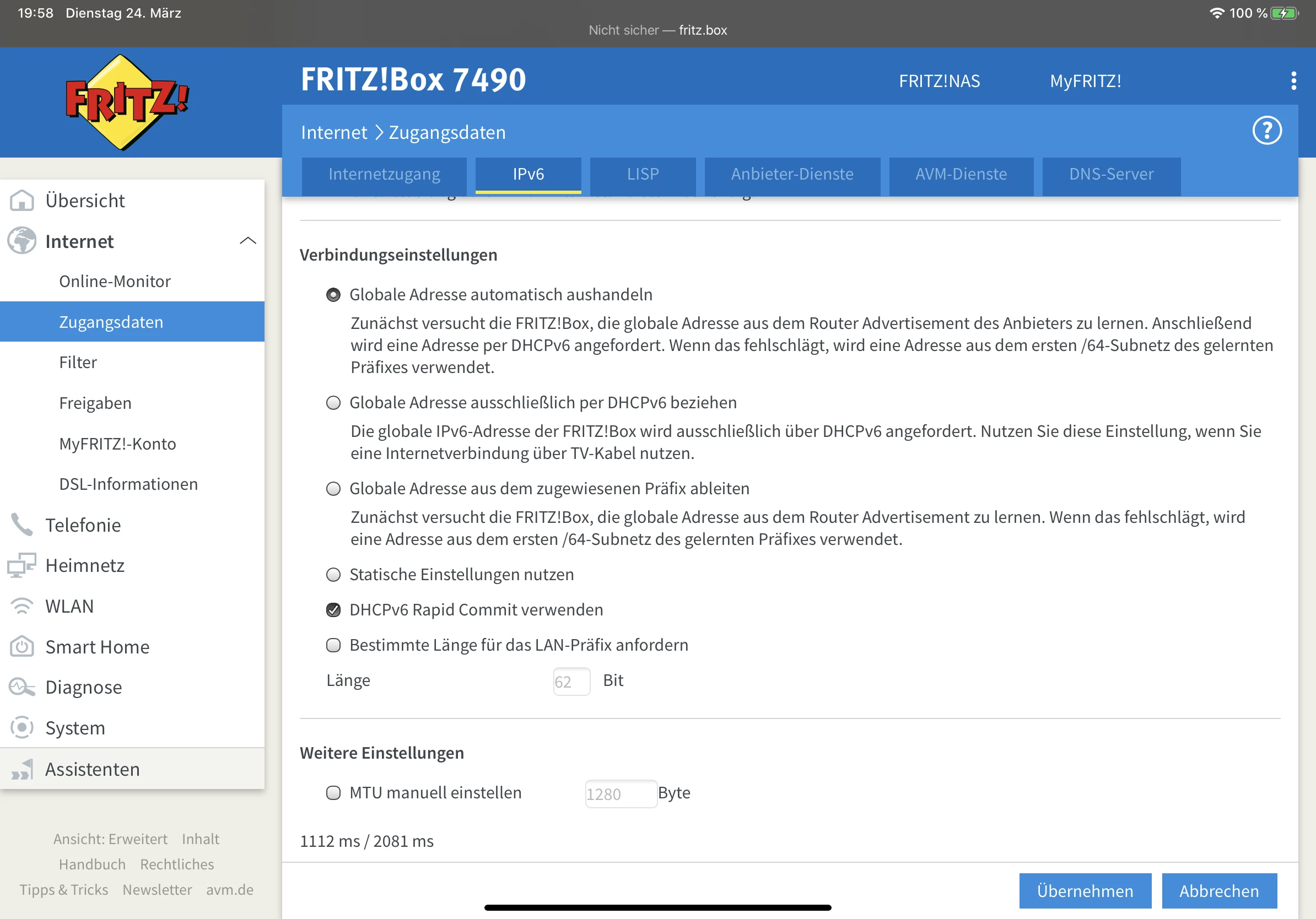 Die Leitung ist wieder mehrere male abgestürtzt und jetzt ist die Geschwindigkeit noch weiter runter…