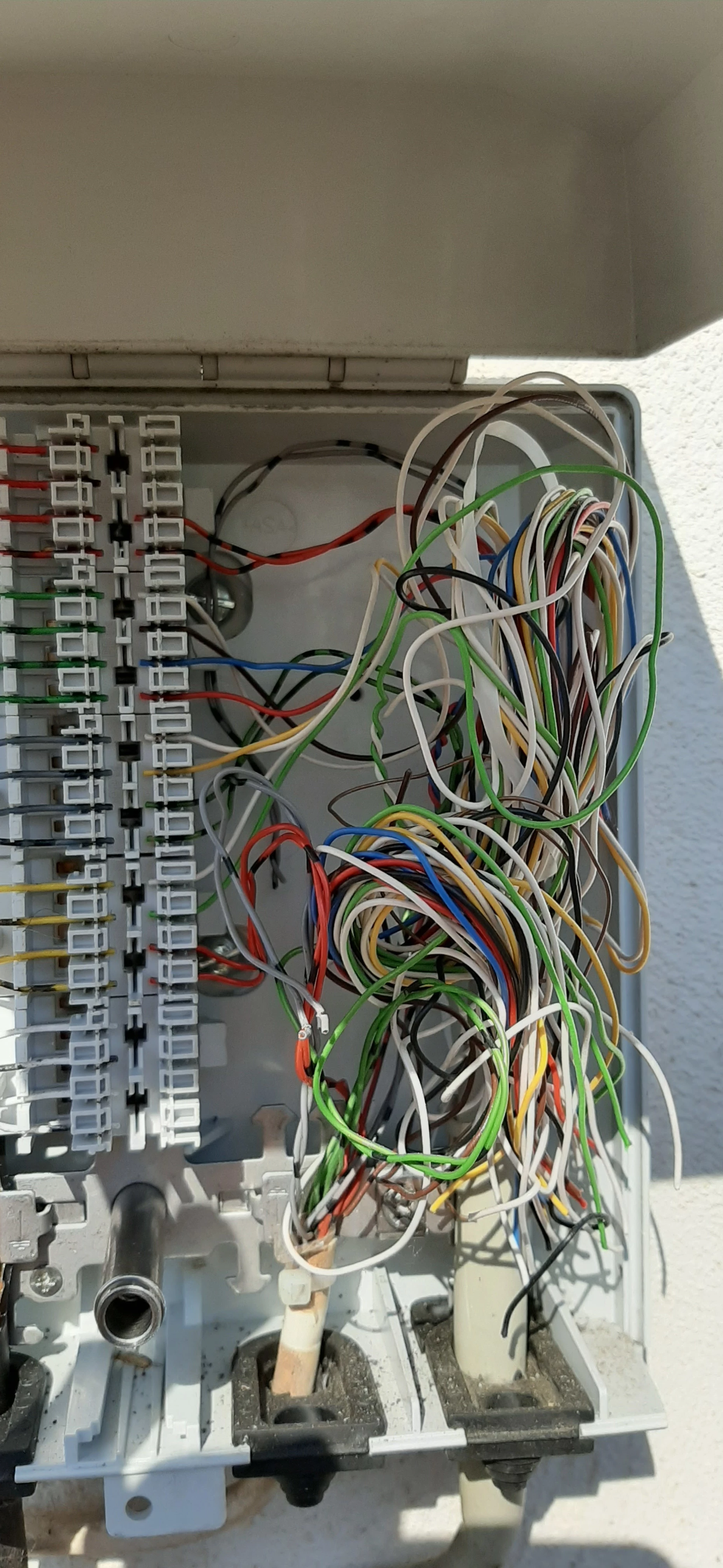Also die Kabel von der Telekom gehen von unten in den Apl rein und die anderen Kabel führen dann von unten nach oben, ich werde sie morgen nochmal fragen ob es eine Dose im Keller gibt!