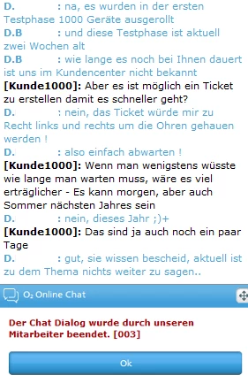Hat er damit den Chat beendet? Falls ja, würde ich sagen, dass ist eine bodenlose dreistigkeit war.