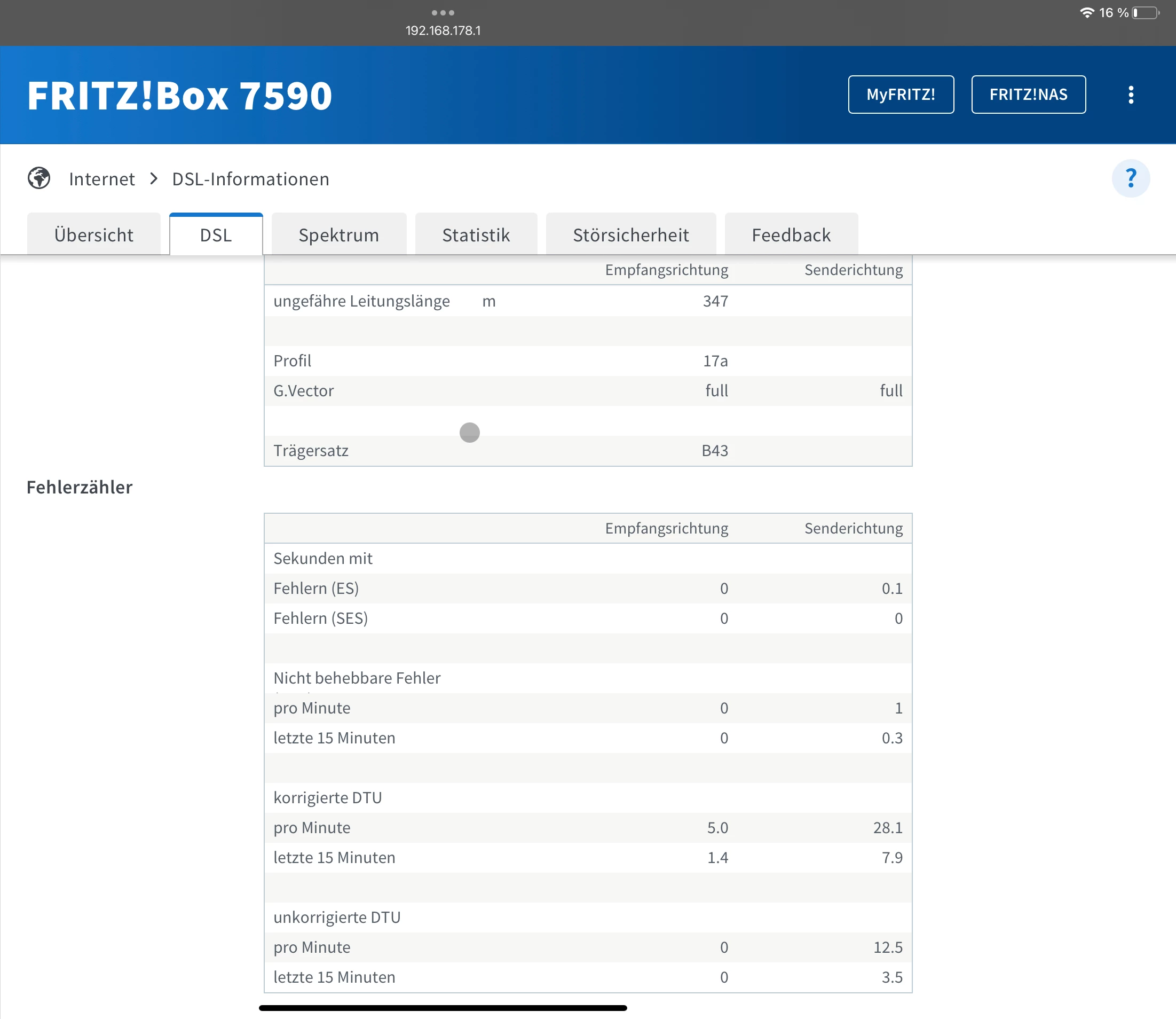 Lt. Techniker waren in der Leitung einige Fehler und die Verbindung wurde automatisch auf 50 MBit gedrosselt.