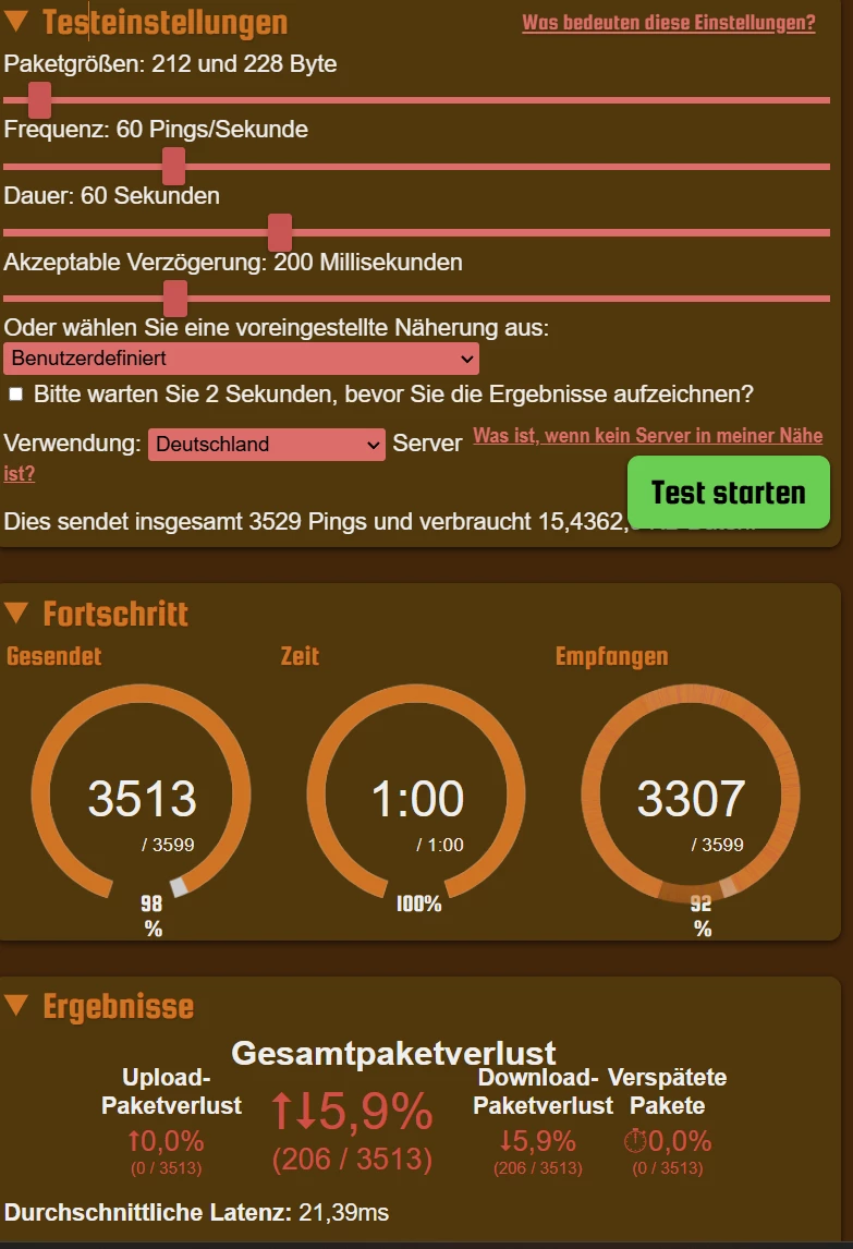 gerne kann ich machen, dazu noch nen Screen aus https://packetlosstest.com :)