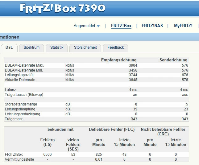 Naja, es ist eine Fritzbox 7390 an einem ADSL Port.