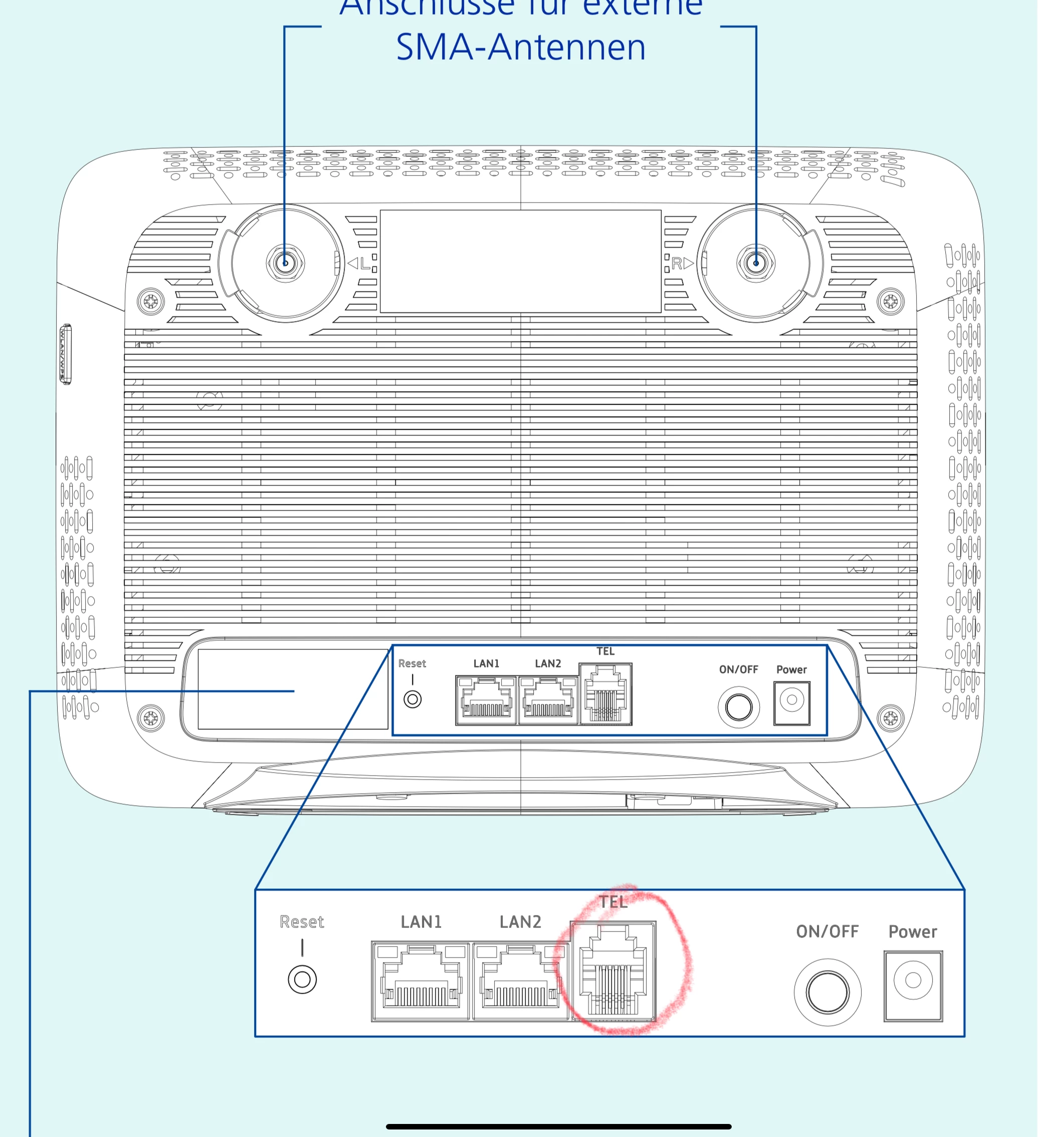 Der Anschluß TEL. Ist für ein Analoges Telefon und nicht für die Telefon Dose.