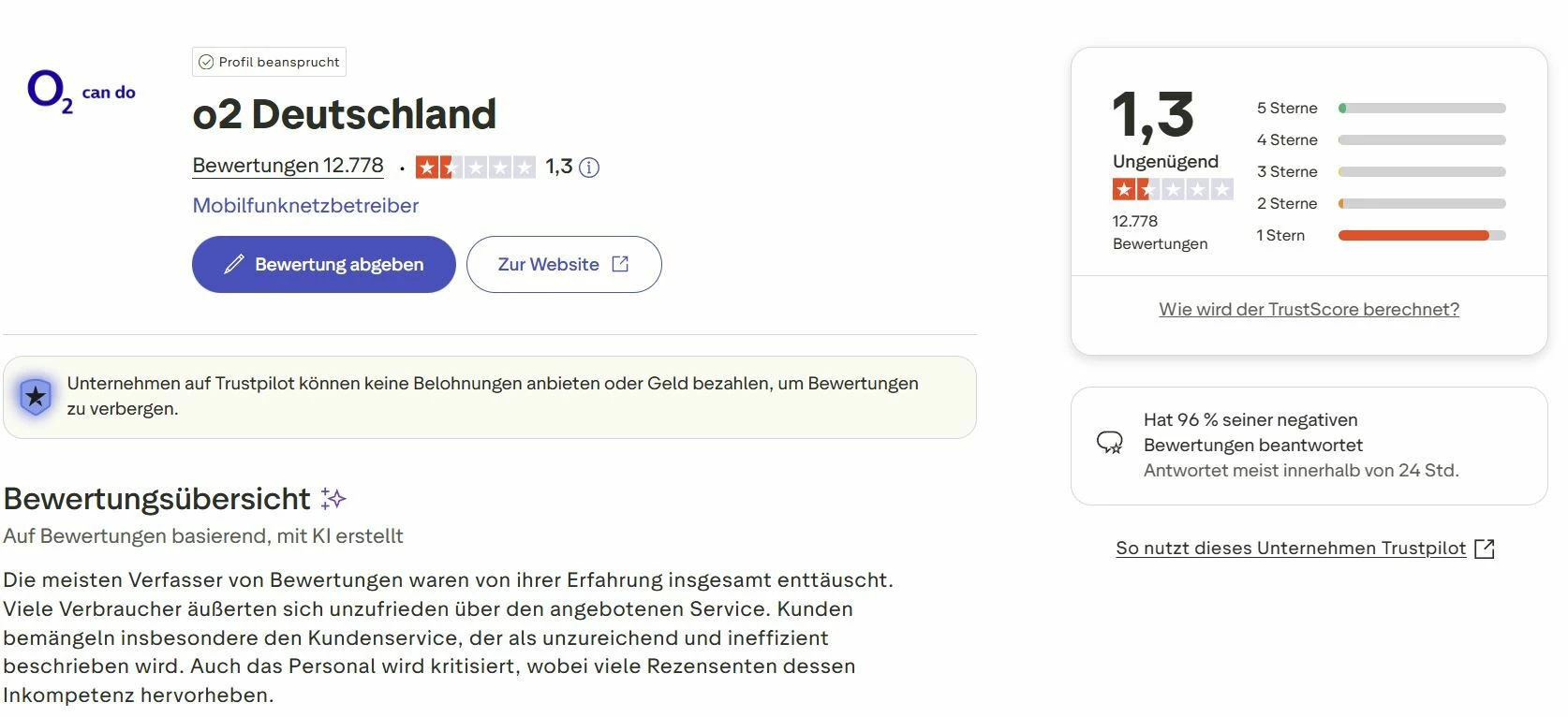 Bei O2 glaube ich nicht mehr an Zufälle und ich habe denen geraten, man möge sich mal das Bewertungsprofil von O2 bei Trustpilot anschauen. 96% Negativbewertungen sprechen für sich...!