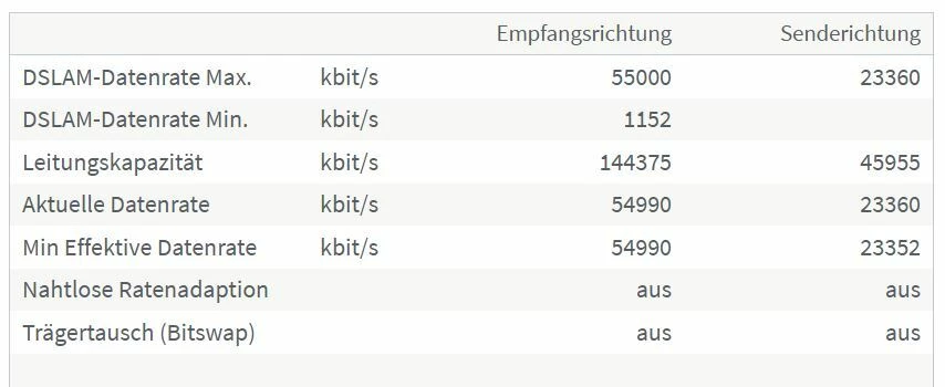 Im Upload bist Du IMHO jetzt beim normalen vertraglichen Limit, und beim Download ist 55000 Kbps eine er bekannten dP/Assia-Zwischenstufen.
