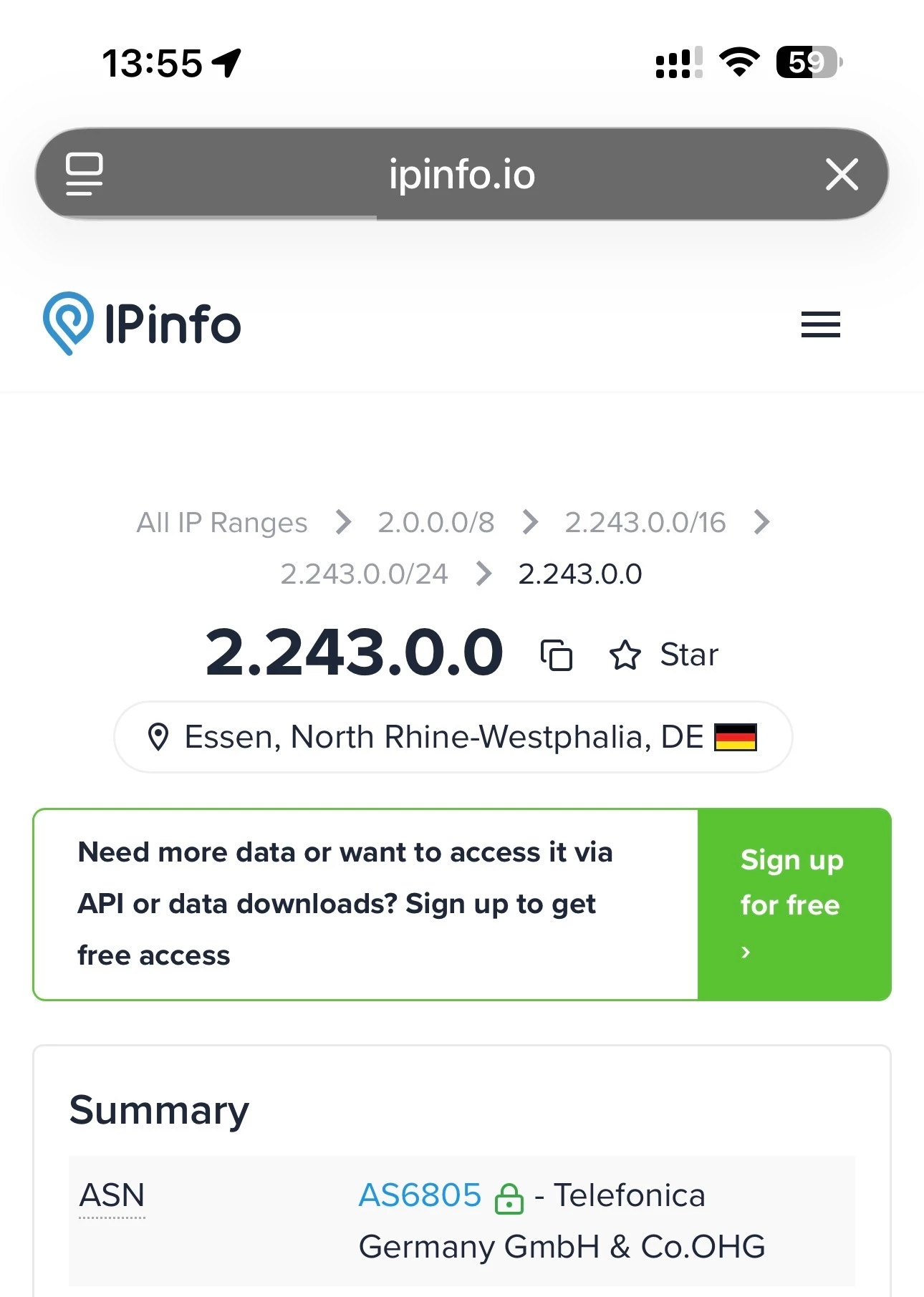 also bei CNG hättest du eine nicht öffentliche Ip hättest dann vermutlich 10.0.0.0/8.
