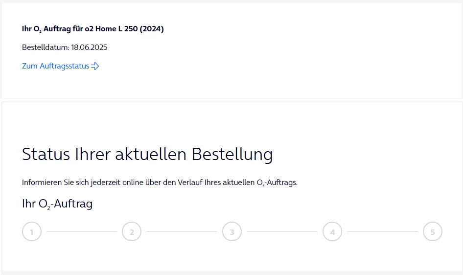 Im Online Portal sieht der Status meiner Bestellung sehr ernüchternd aus: