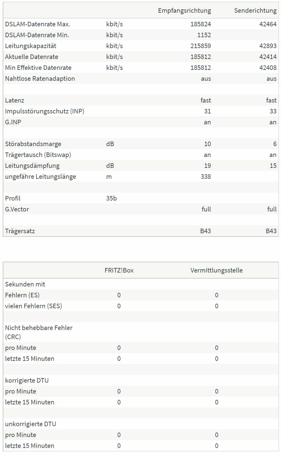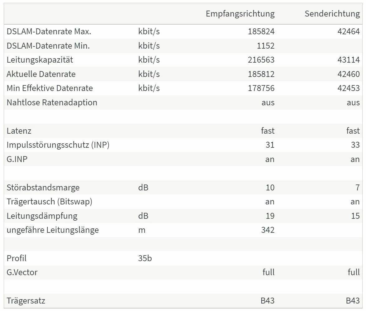 Poste bitte mal die Tabelle “DSL” mit allen Leitungsparametern zum Vergleich “vorher/nachher”.