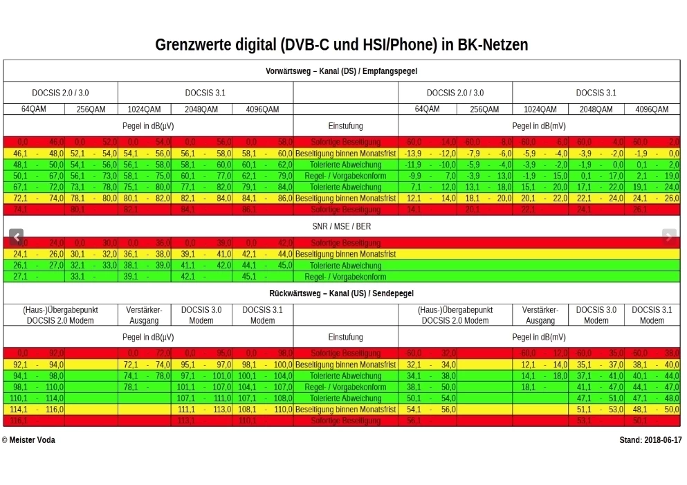 wenn ich mir die Grenzwertliste anschaue, vermute ich, dass die Leitung draussen zickt oder vergleichbar. Der Techniker wollte davon nichts wissen, was Modulation und PowerLevel betrifft. Kann mir jemand empfehlen, wie ich weiter voran gehen soll?