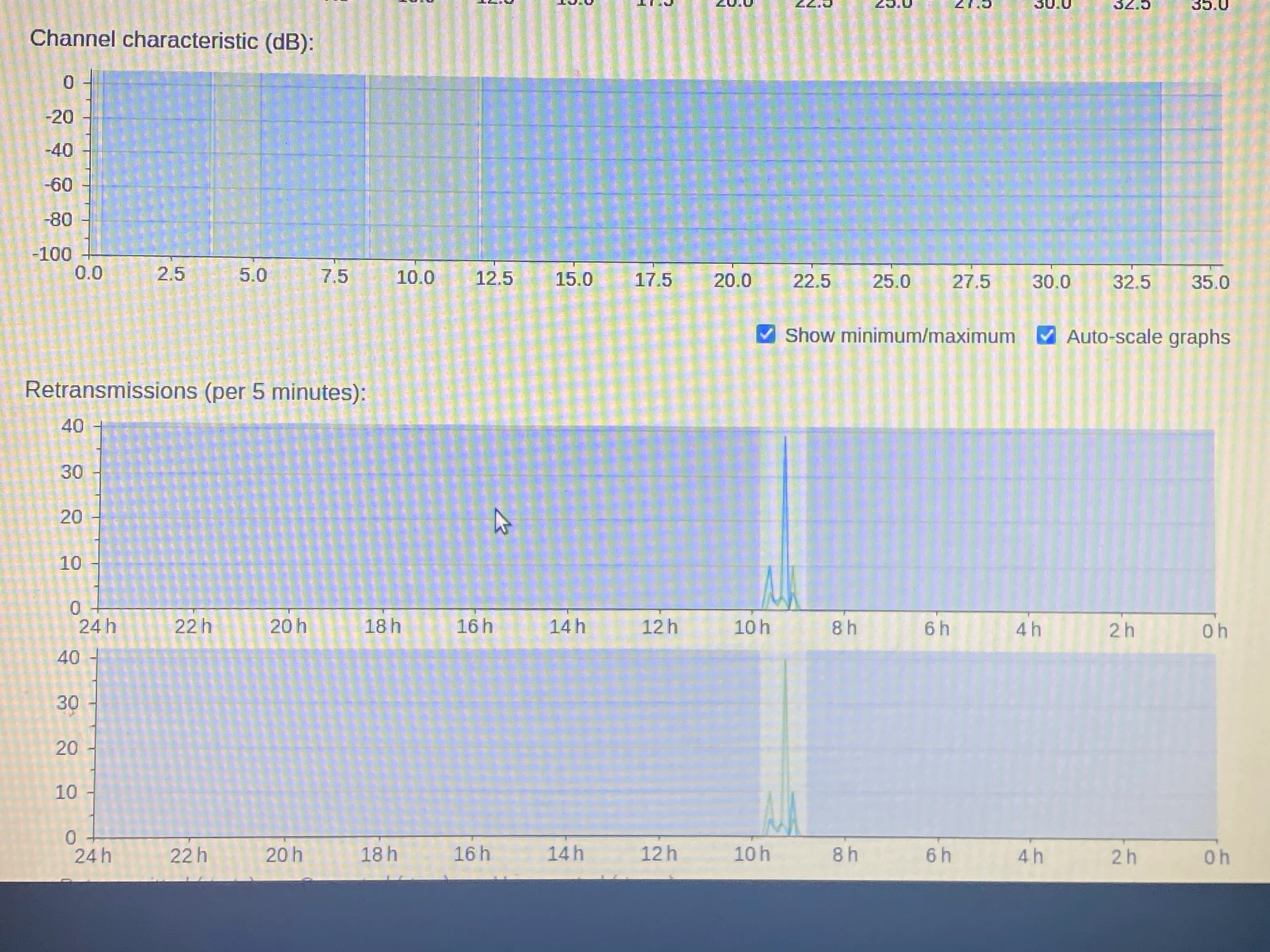 Wenn man das laufen lässt, dann zeigen die X per 5 minutes Graphen die Änderung bestimmter Fehler- und Proto-Fehler-Zaehler in 5 Minuten Blöcken an. Das kann hilfreich sein um Störer zu entdecken die nur zu bestimmten Zeiten aktiv sind, allerdings gibt es bei Fritzboxen das Problem, dass zumindest wenn man "-o LoadSupportData=1" verwendet die Fritzbox nach wenigen Stunden abstürzt... (vermutlich weil die Menge an erzeugten Supportdatenarchiven zu gross wird).