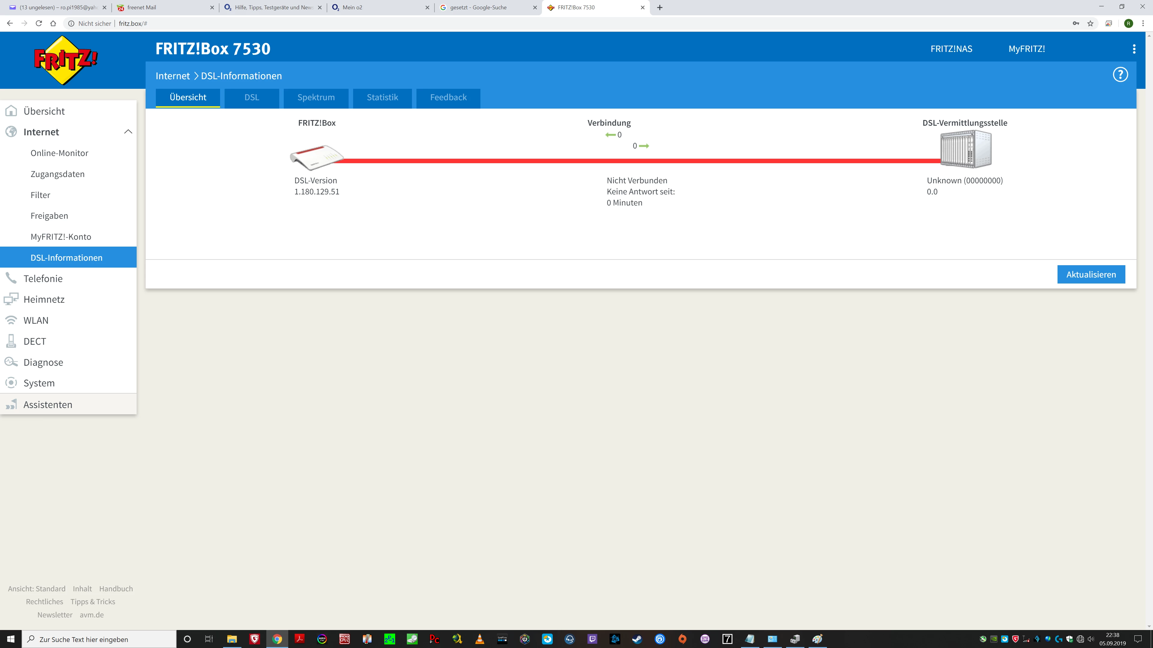 Wenn keine DSL-Verbindung besteht, braucht man im übrigen auch nicht versuchen Zugangsdaten einzugeben - das bringt nichts.