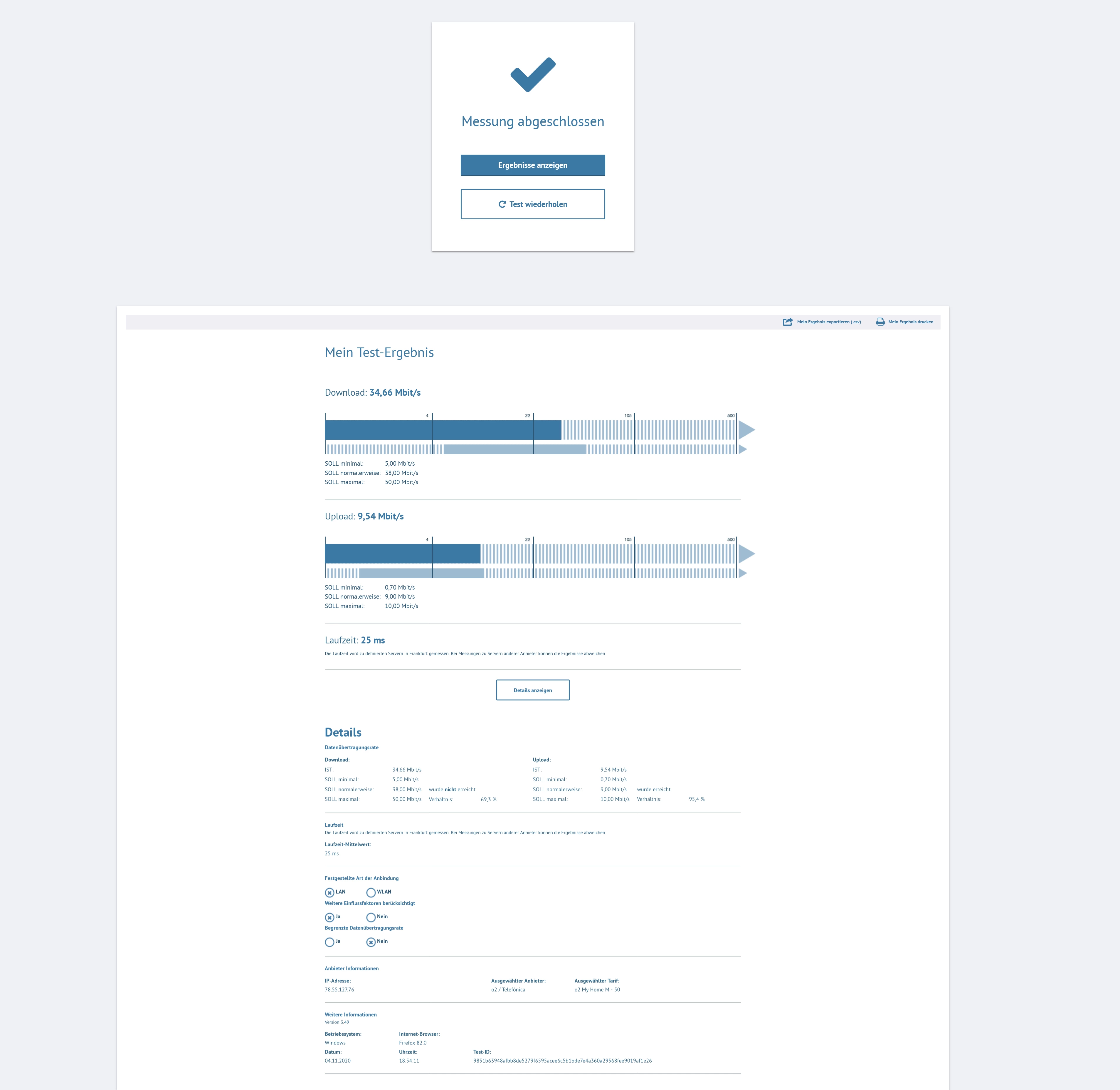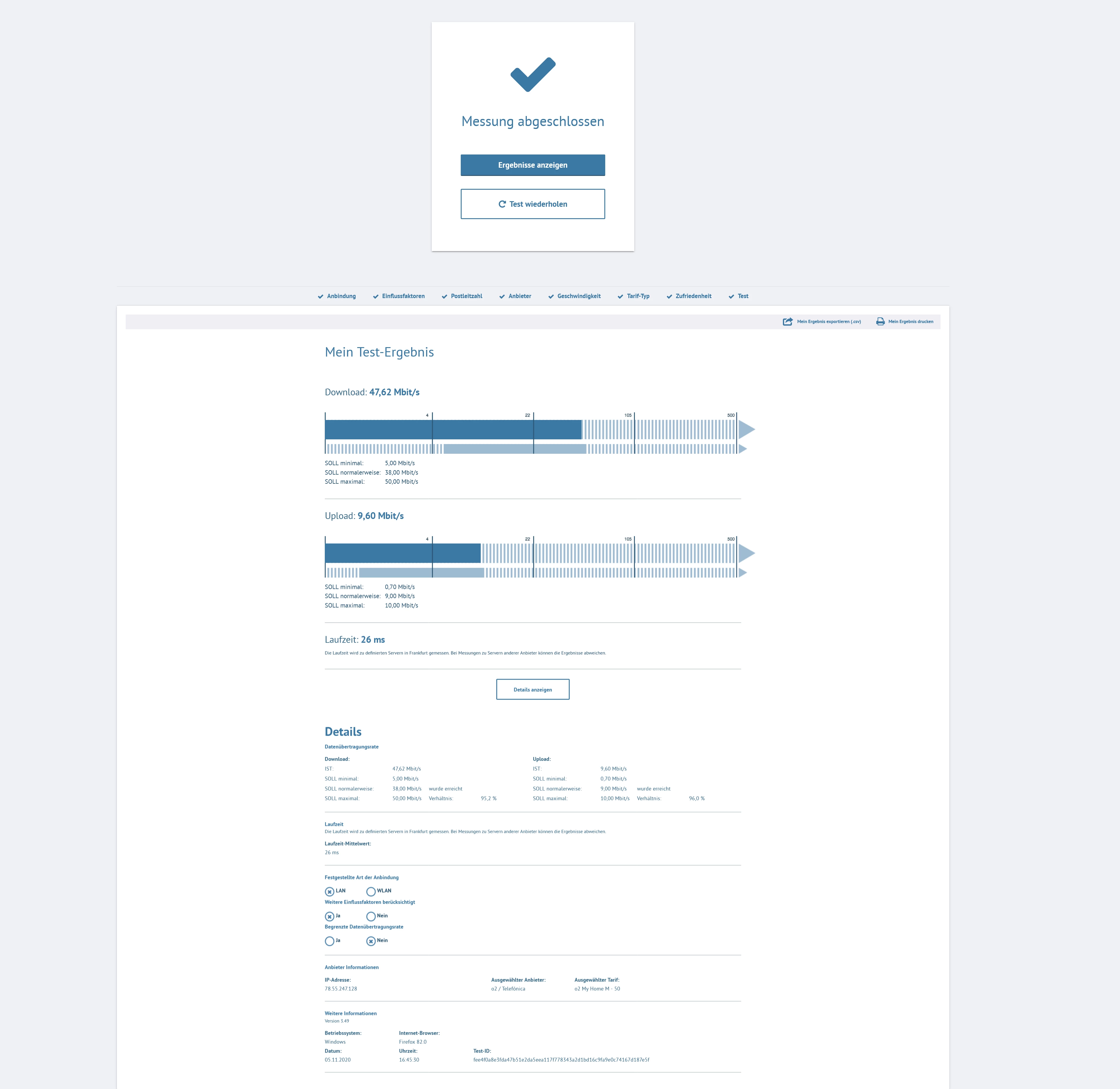 hm… auch weiterhin ist der Anschluss mit guten Werten deutlich über 50MBit/s synchron. Bitte führe einmal eine Messung über einen per LAN-Kabel direkt am Router angeschlossenen Computer über die Breitbandmessung durch und stelle uns das hier bitte einmal als Screenshot ein.