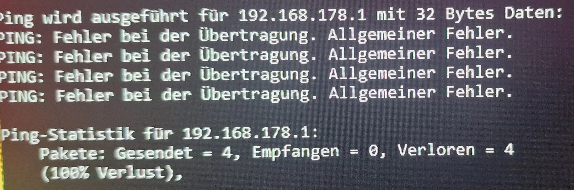 Und danach vier mal Ping: Fehler bei der Übertragung. Allgemeiner Fehler.
