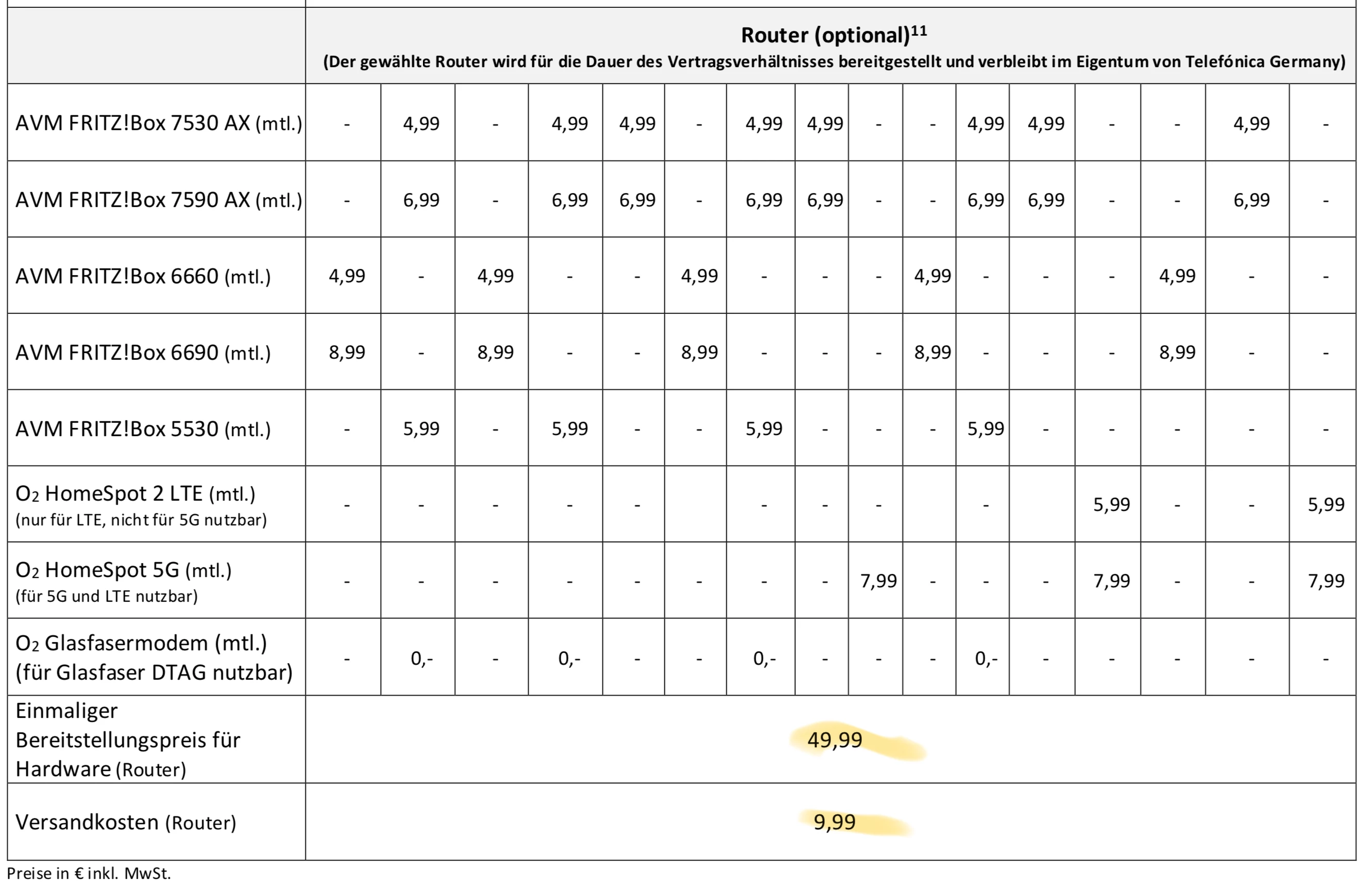 Wenn Du einen anderen Router willst, musst Du diese bezahlen. Die Preise findest Du oben.