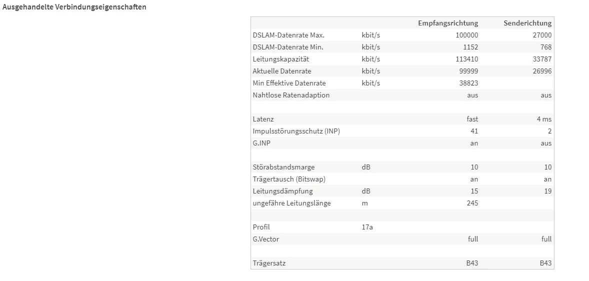 In der Fritzbox wird auch 100 Mbit/s angezeigt, aber ich habe vertraglich “nur” 50 Mbit/s, da ich auch nie mehr benötigt habe.