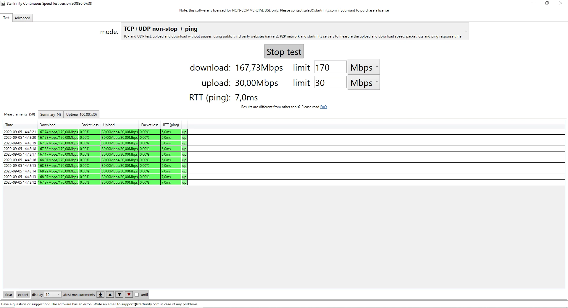 Beim unteren Screenshot hast du den SIP Test heruntergeladen, ich meine aber das Continuous internet speed test tool.