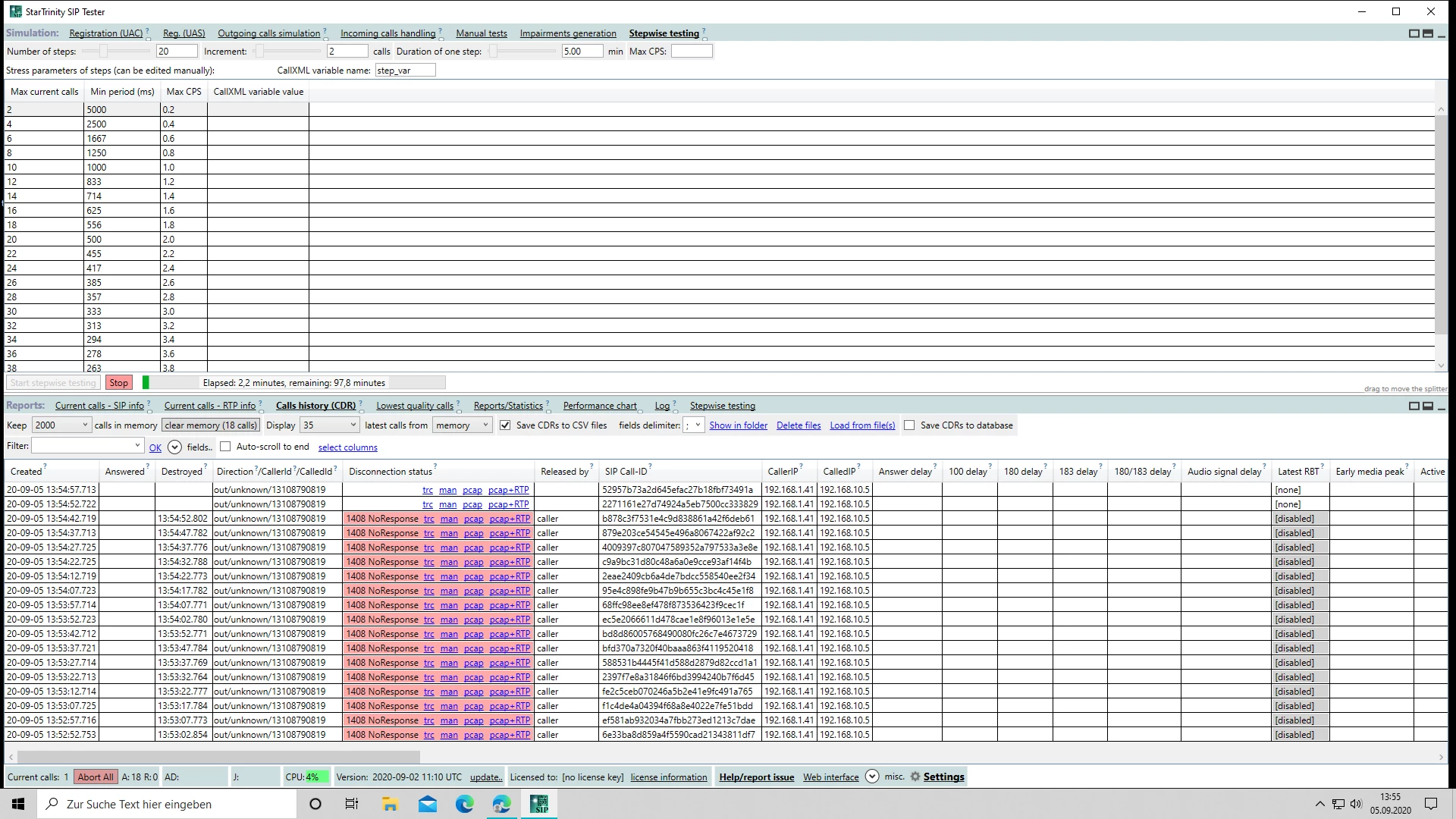 Am besten die Anzahl der simulierten Anrufe auf 50 stellen.