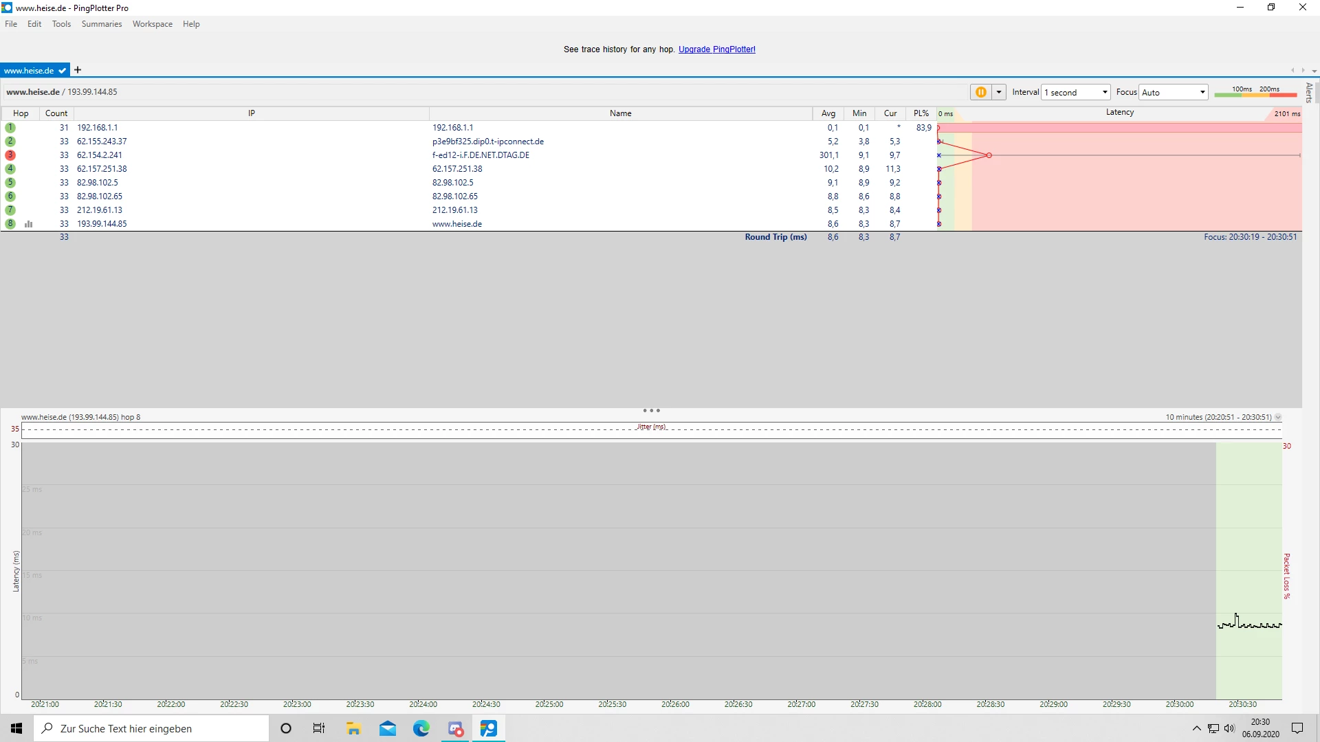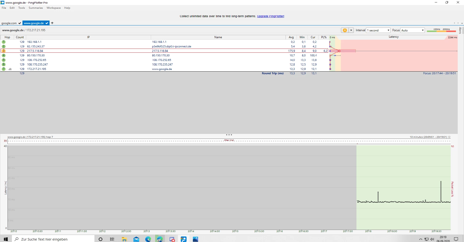 Wie kann das denn sein? Ist das irgendwie ein Bug bei Pingplotter?