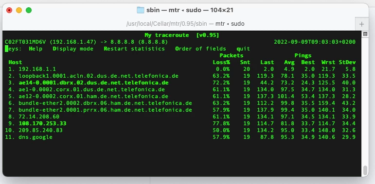 Home DSL Konstanter Paketverlust bis zu 60 % von 9:00 - 10:00 Uhr. Den Rest der Zeit ist alles mehr oder weniger.