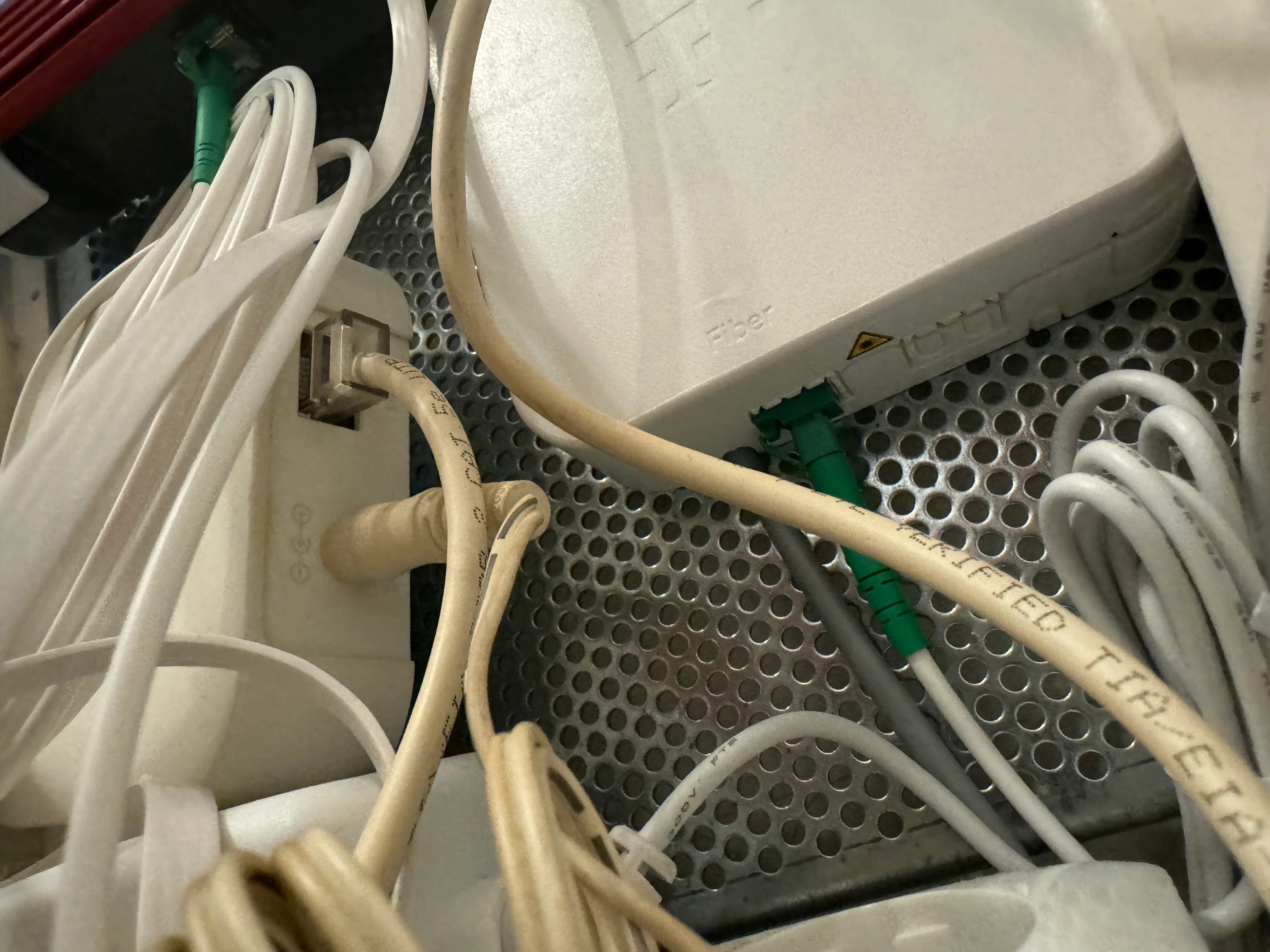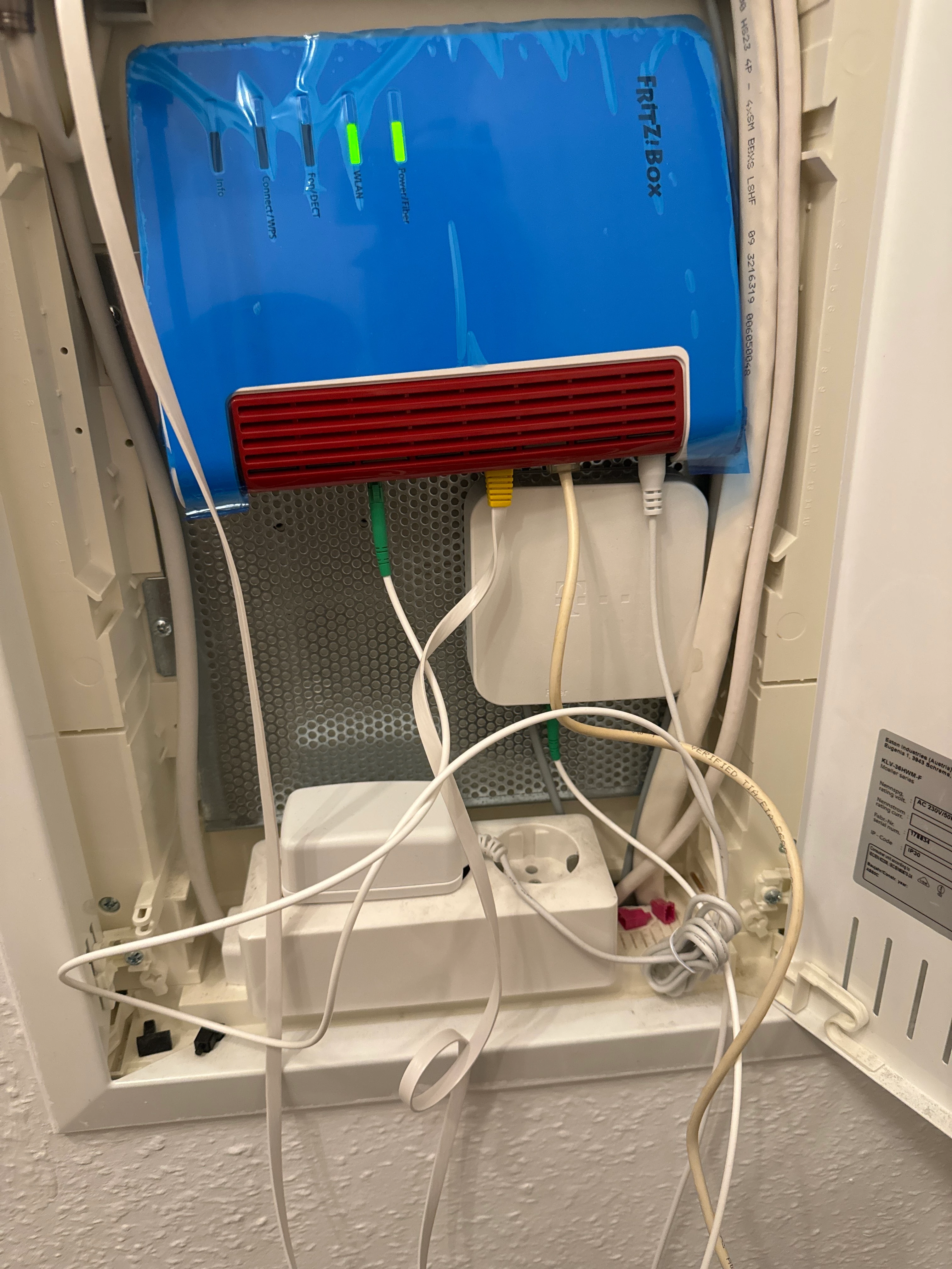 Nun ist es so, dass ich ein passives ONT der Telekom habe, ich kann also nur direkt einen Glasfaserkabel mit dem Modem (FritzBox 5530 Fiber) verbinden. Das ist natürlich aufgrund der Position schlecht, da das WLAN Signal fast nicht bis ins Wohnzimmer reicht.