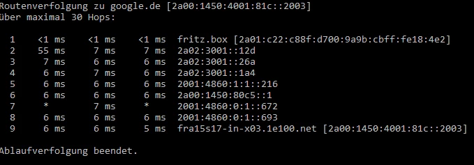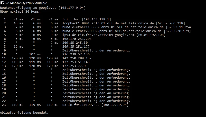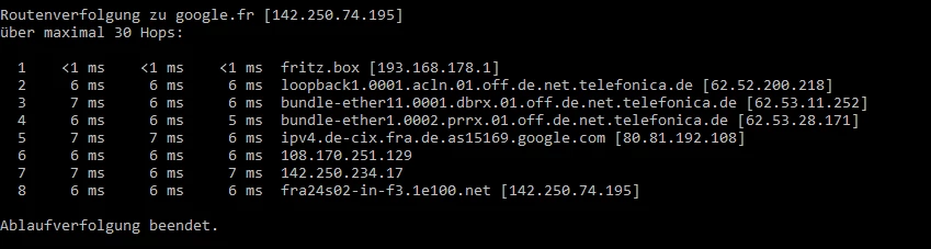 Hier noch eine Traceroute an Google Frankreich zum direkten Vergleich: