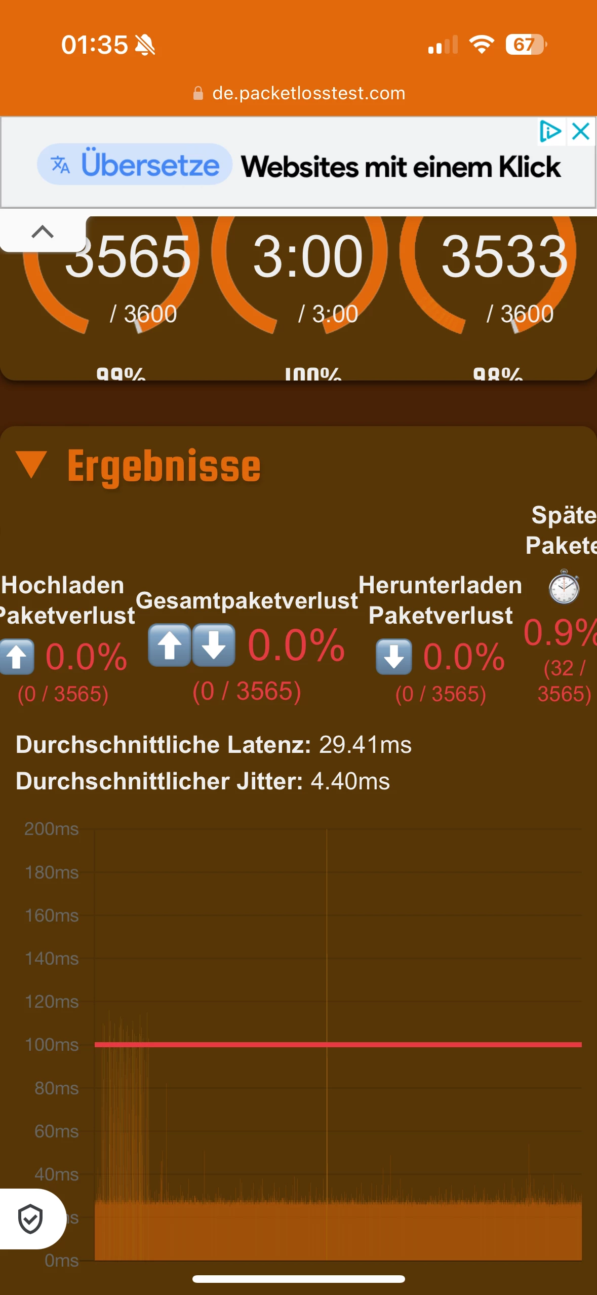 Im Moment bleibt es bei einem recht stabilen Ping.