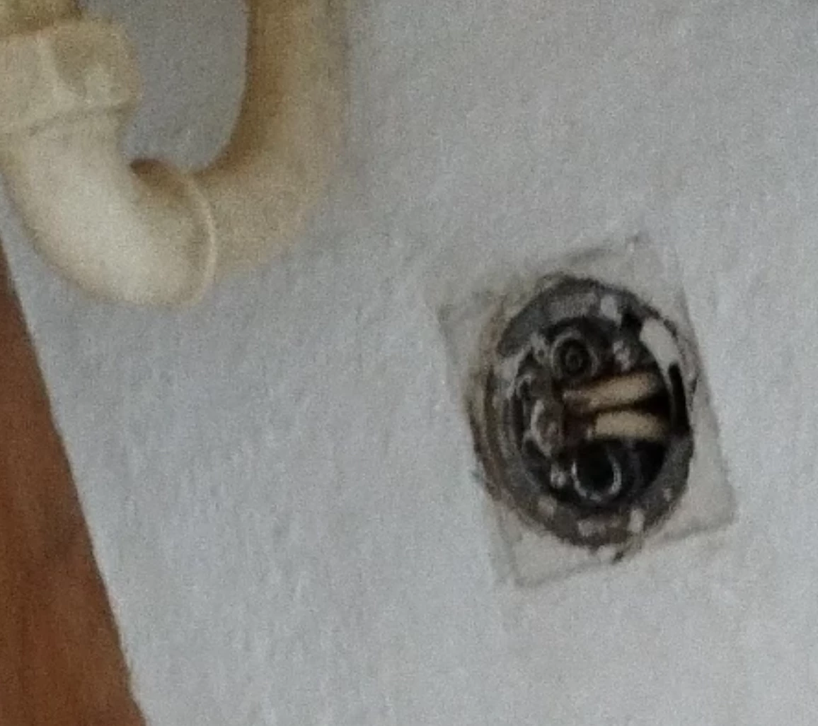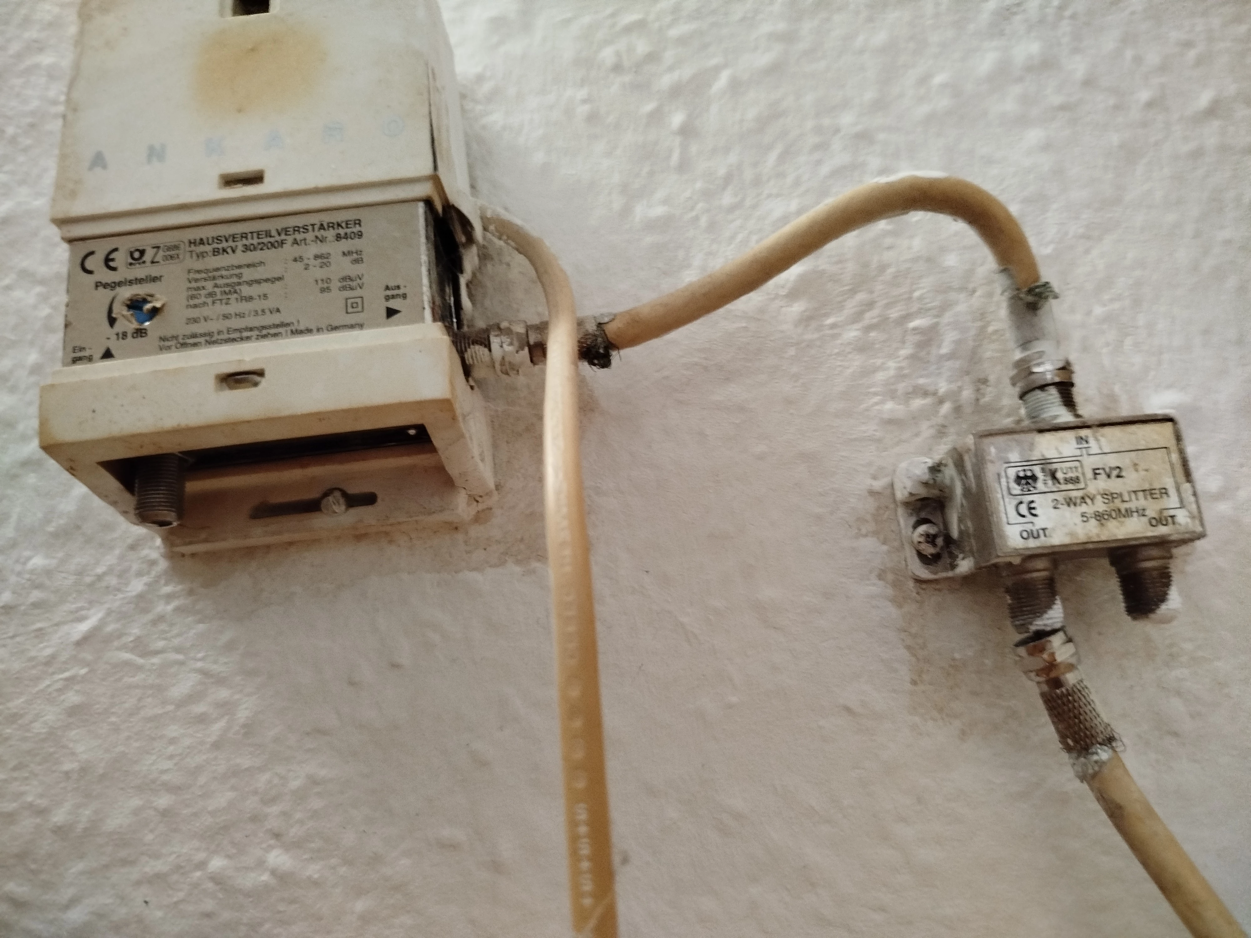 Meine Kristallkugel tippt auf einen Dach-Antennenanschluß von 1960, der 1990 vom Kabelanschluß (rechts) abgelöst wurde.