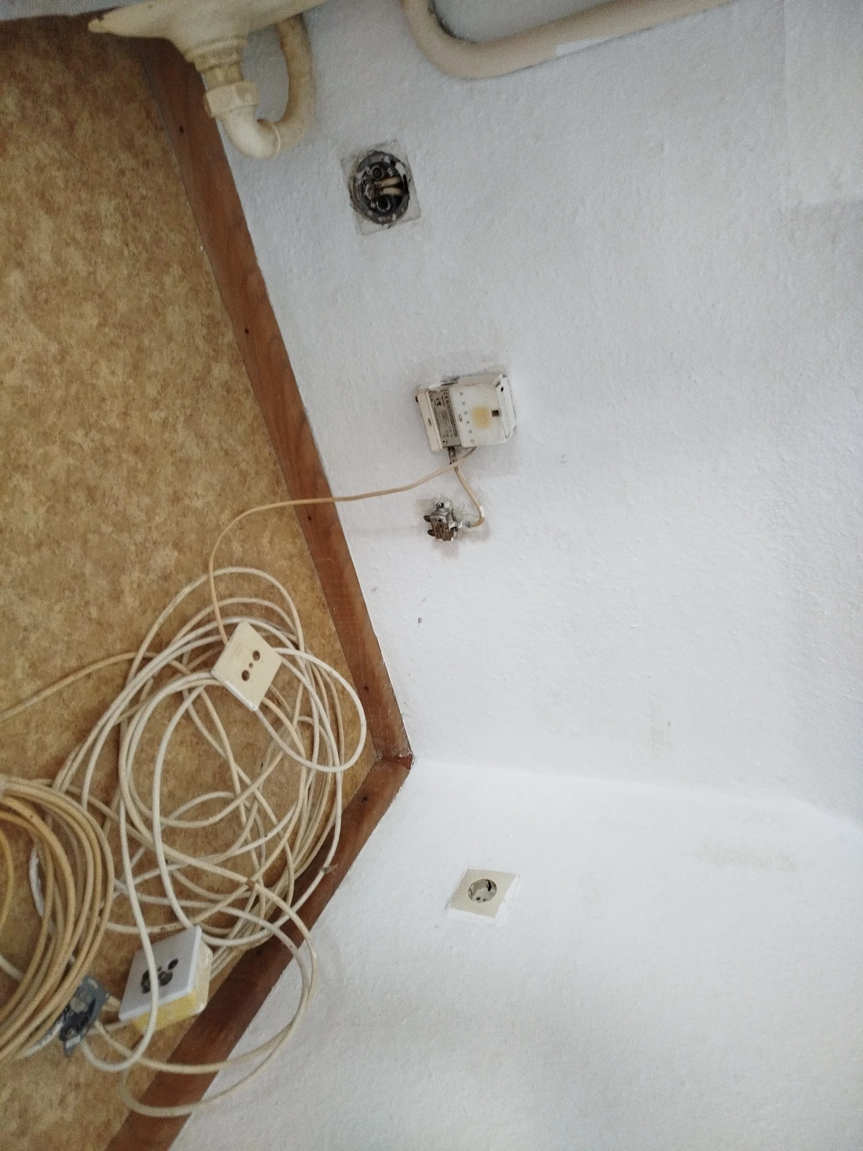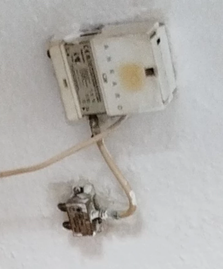 Das sieht so aus als wenn es gleich aus der Wand fällt. Und das links blank in der Wand ist auch lebensgefährlich. Sachen gibt es.