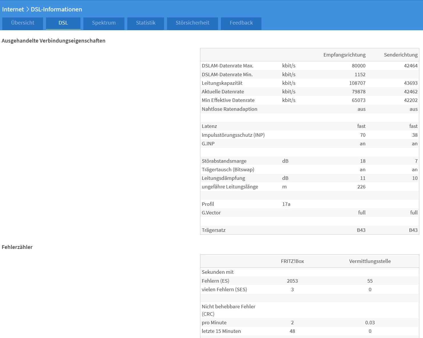 @Noblenote Könntest Du bitte mal einen Screenshot von Internet/DSL Informationen/DSL aus deiner Fritzbox einstellen. Mich interessiert, ob das ASSIA Fehlermanagement auf deinem Port der Linecard für deinen Anschluss aktiv ist.
