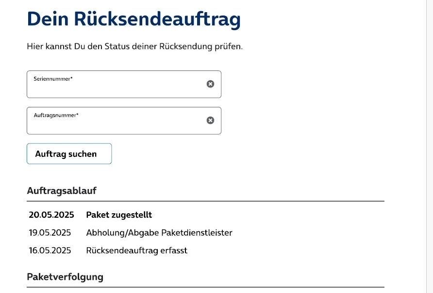 Heute erhielt ich eine Information von o2, dass der Router, den ich am 19.5.25 mit dem mir von o2 zur Verfügung gestellten Versandticket zurück versendet habe, angeblich nicht da ist. Er ist aber laut DHL Sendungsverfolgung und sogar laut o2 Seite https://router-retoure.o2online.de/start/OrderCreation/RepairStatusHistory (siehe Screenshot) bereits am 20.5.2025 angekommen.