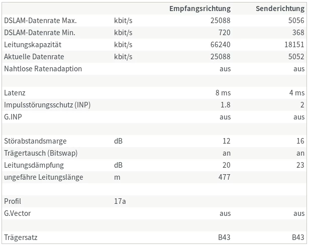 Dein Problem ist aber verstanden, ich denke das nach Schaltung ein Mod bei der Telekom die Erhöhung des Profils beantragen kann.  Das passiert dann mit der Fernwartung. Ein Techniker Einsatz ist dafür nicht erforderlich. Weil man sieht erst nach der Schaltung was wirklich geht und was nicht. Hier sehen wir 66 Mbit Leitungskapazität nach der Schaltung.