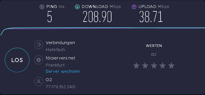 Ich selber habe einen 5er Ping und hohe Download und Upload raten.