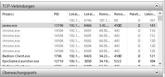 Roundtrip Latenz bei 143ms bis über 200ms. Ping aber sehr niedrig.