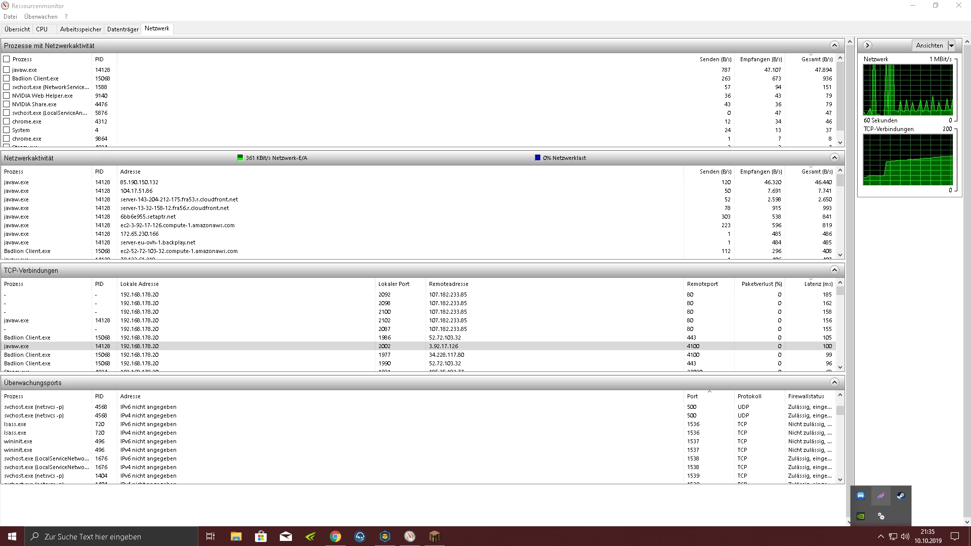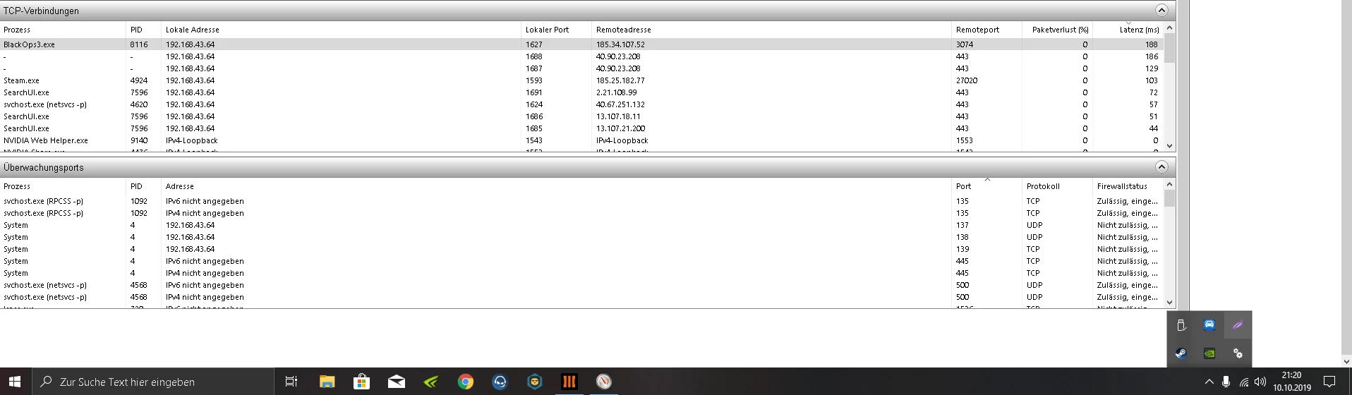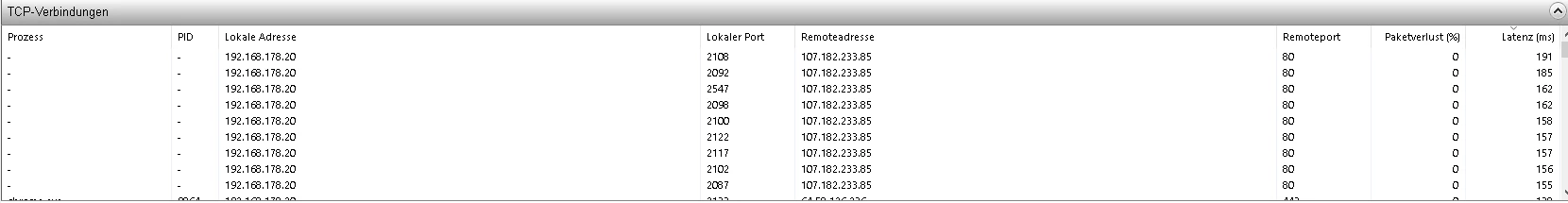 auch beim Resourcenmonitor hatte ich die gleiche Latenz wie Ping.