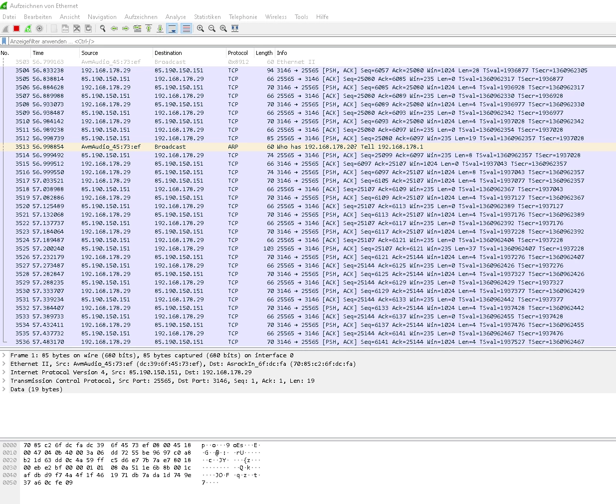 Hab gerade Wireshark heruntergeladen, vllt , erkennt ihr da irgendwas :/