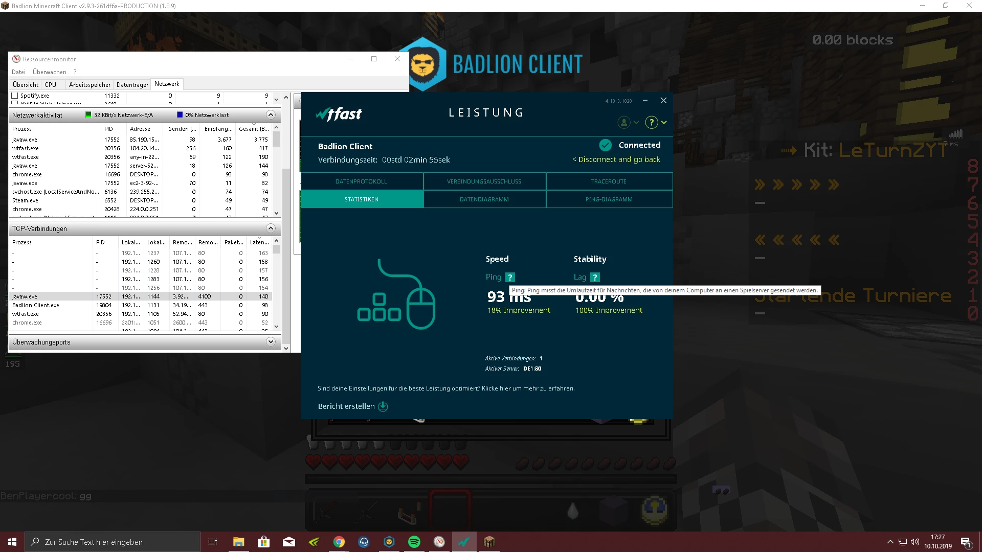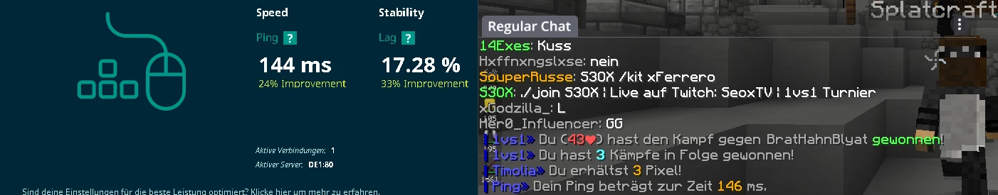 Hier die Latenz von meinem Freund bei Minecraft.