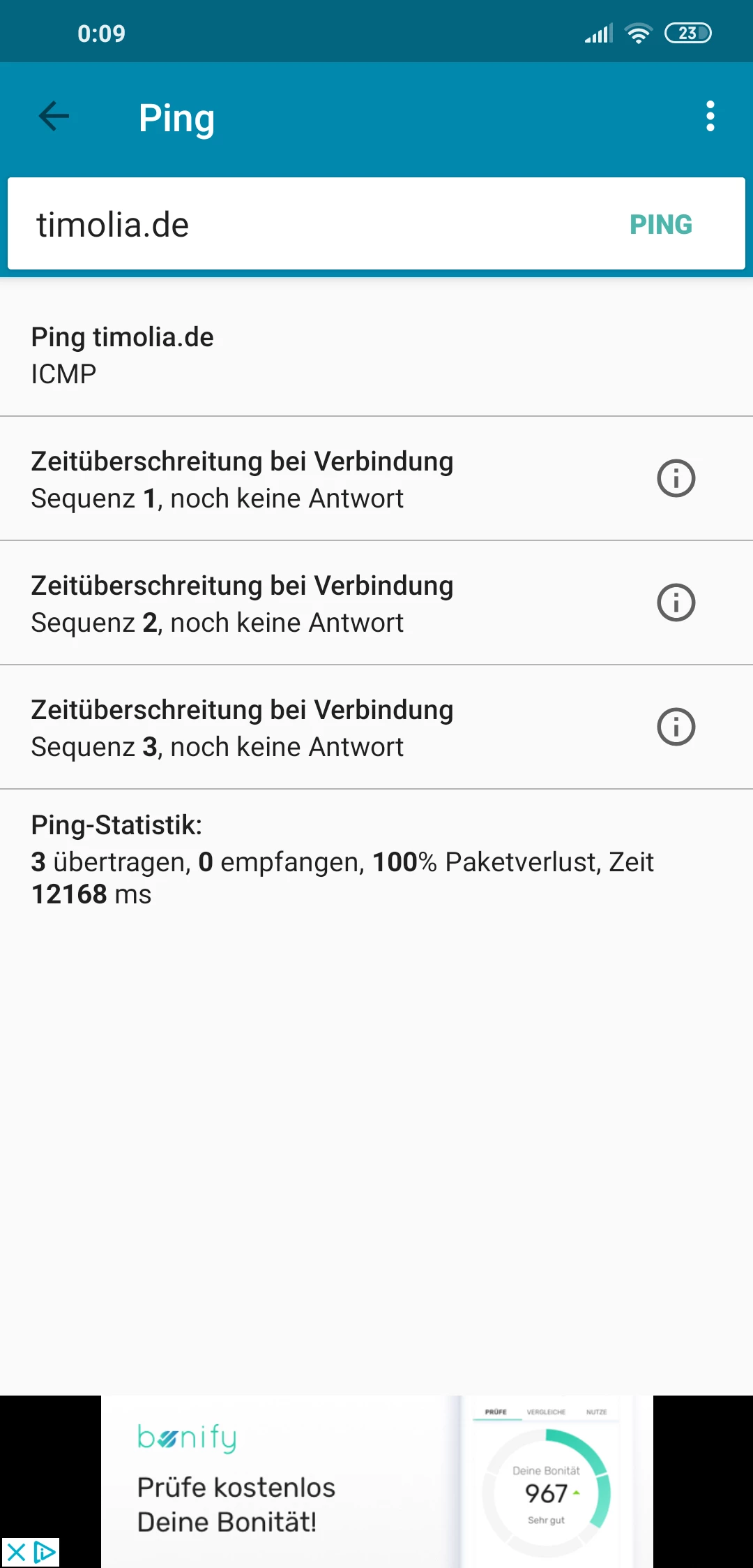 Antwort von 85.190.150.132: Bytes=32 Zeit=20ms TTL=58