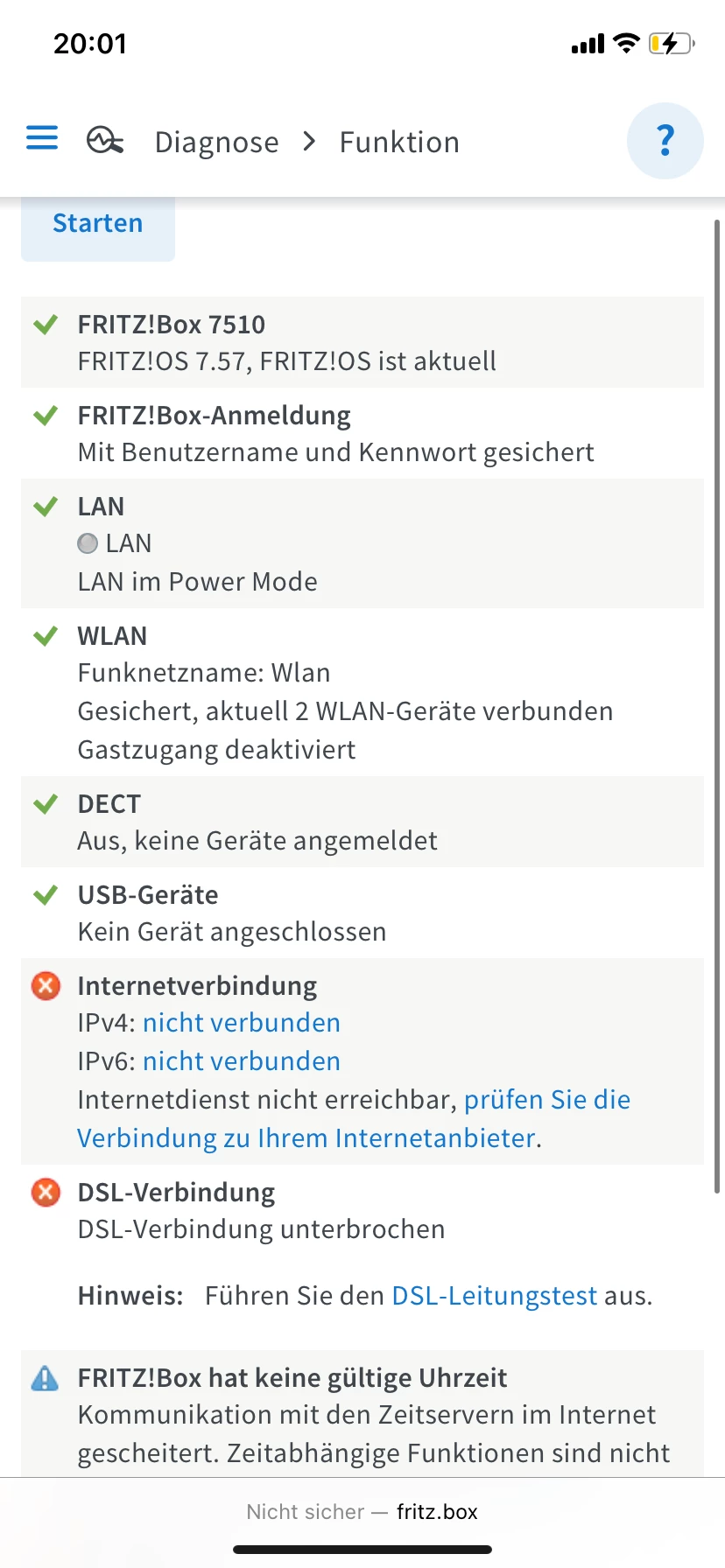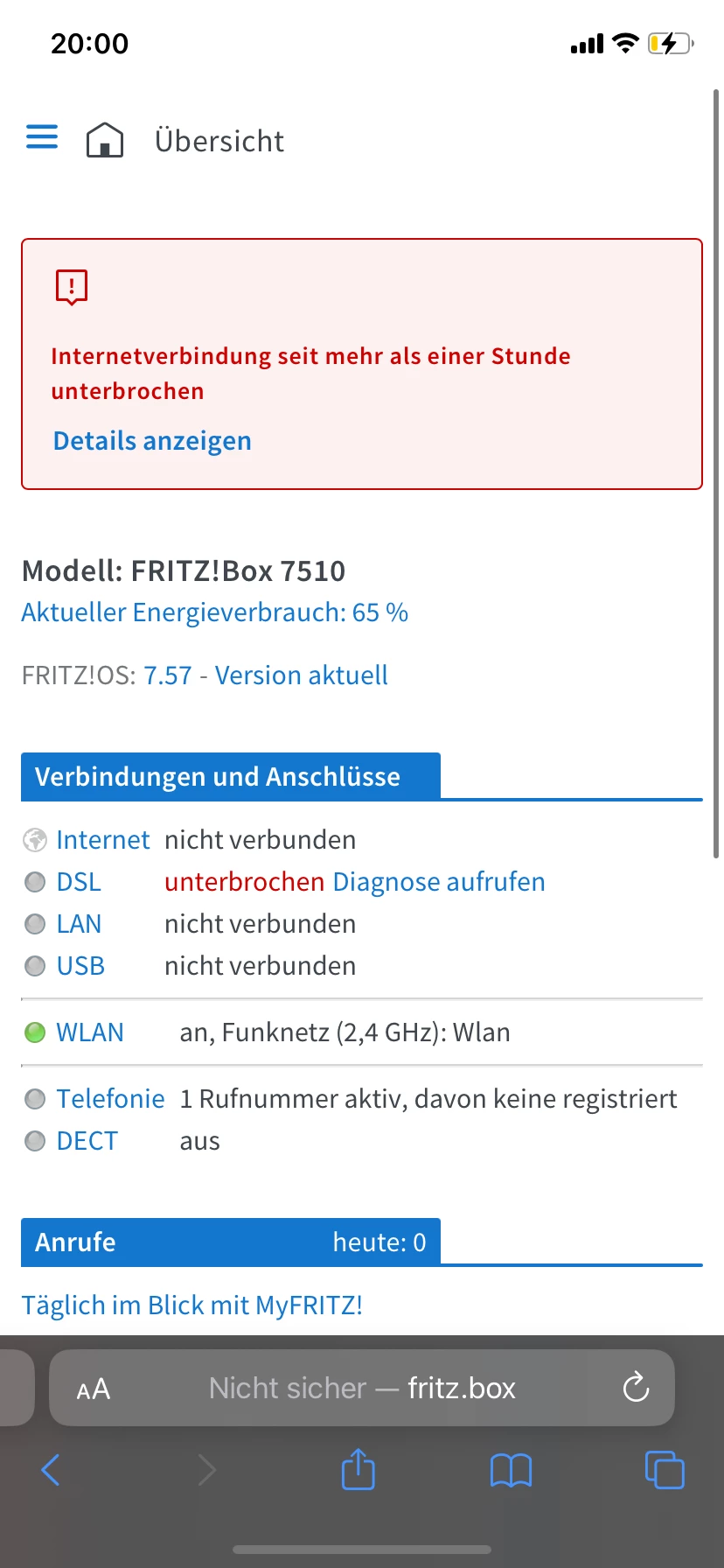 Kannst du mal auf die Seite Fritz.box gehen und schauen was dort angezeigt wird ?