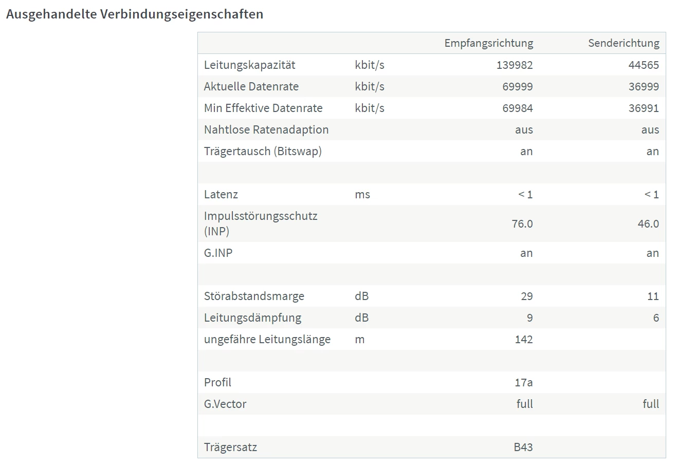 vielleicht kann mir hier ja jemand Licht in’s Dunkel bringen. Seit einiger Zeit ist mir aufgefallen, dass ich nicht mehr die volle Bandbreite bei meiner DSL-Verbindung habe. Habe jetzt in der letzten Woche verschiedene Router ausprobiert, verschiedene Kabel etc. Letztendlich ist mir aufgefallen, dass ich in der Benutzeroberfläche meines Routers (egal ob O2-Box oder Fritzbox) bei der empfangenen Bandbreite nicht über 69,99k Mbit/s komme. Ich hatte früher immer die volle, oder zumindest annähernd volle mögliche Bandbreite von 100k. Daher kann es mMn nicht an der Hausleitung oder ähnlichem liegen. Aber ein “Verlust” von bis zu über 30% ist schon auffällig, finde ich.