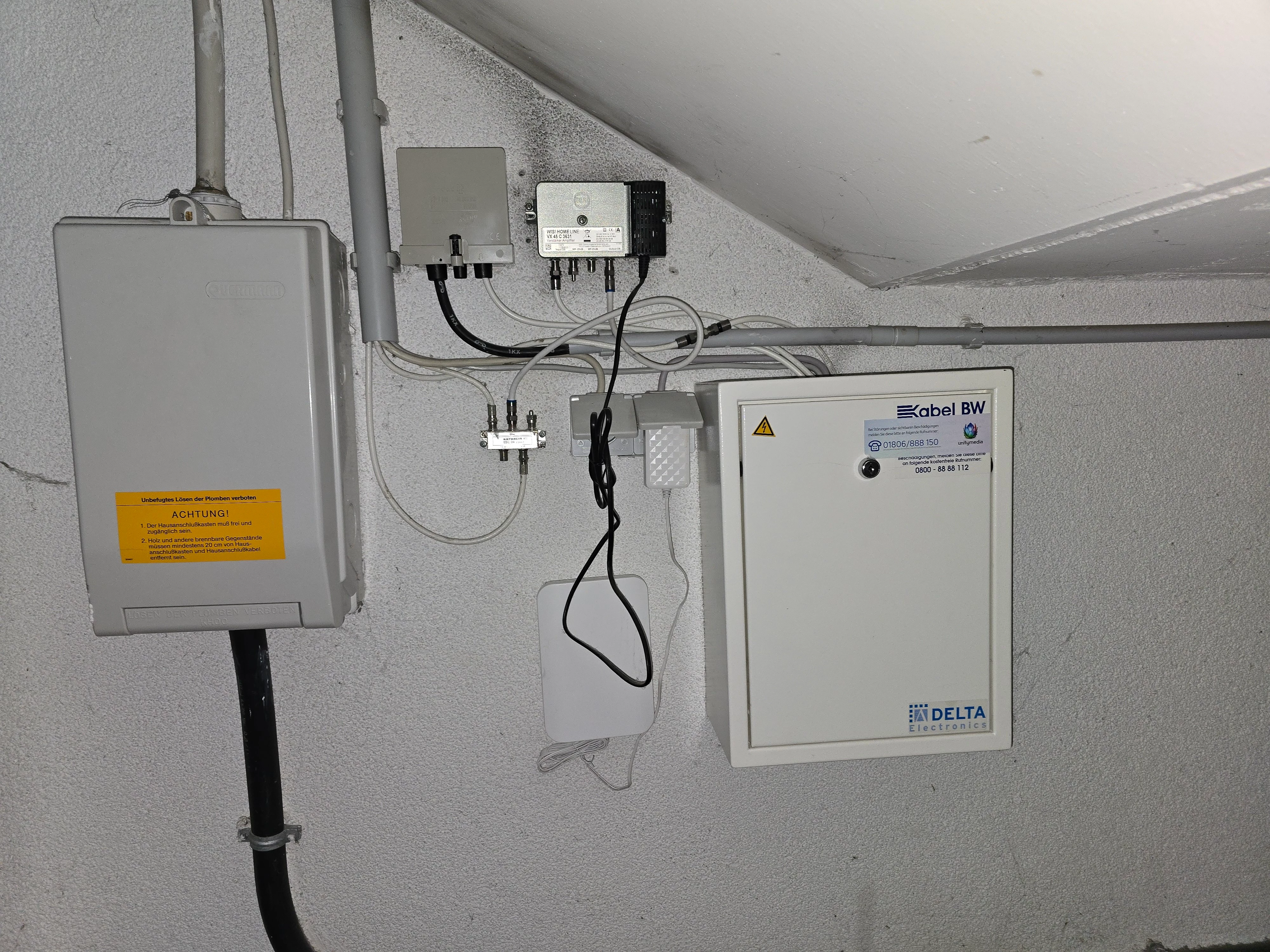 @rentek Nachtrrag: Ich war eben im Keller und wie ich mir dachte sind alle Kästen verschlossen, aber vielleicht kannst Du mit dem Foto ja etwas anfangen. Bei Bedarf habe ich auch noch Nahaufnahmen von den Komponenten gemacht