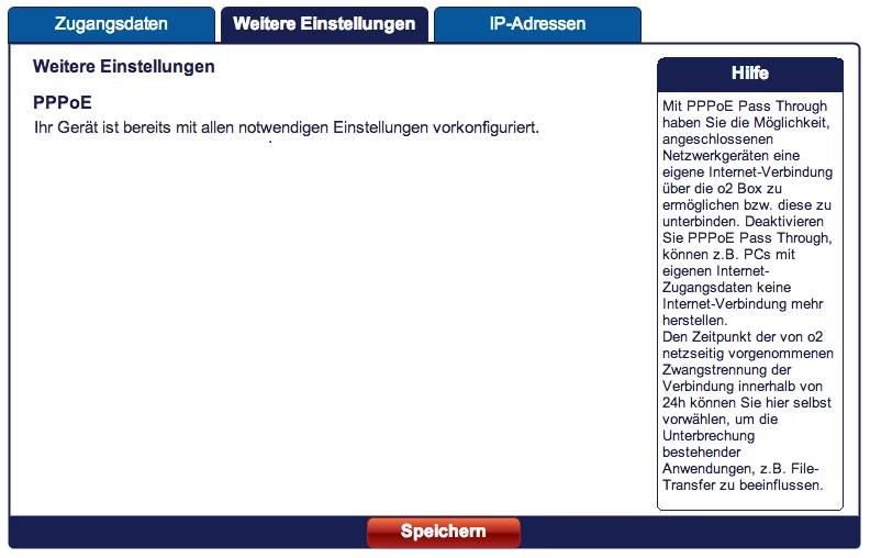ich möchte das Thema noch mal hervorkramen und von einer kleinen Änderung auf der o2Box-Seite berichten, die mir gerade aufgefallen ist. Einen Screenshot zur "neuen" pppoe-Seite im Anfang...