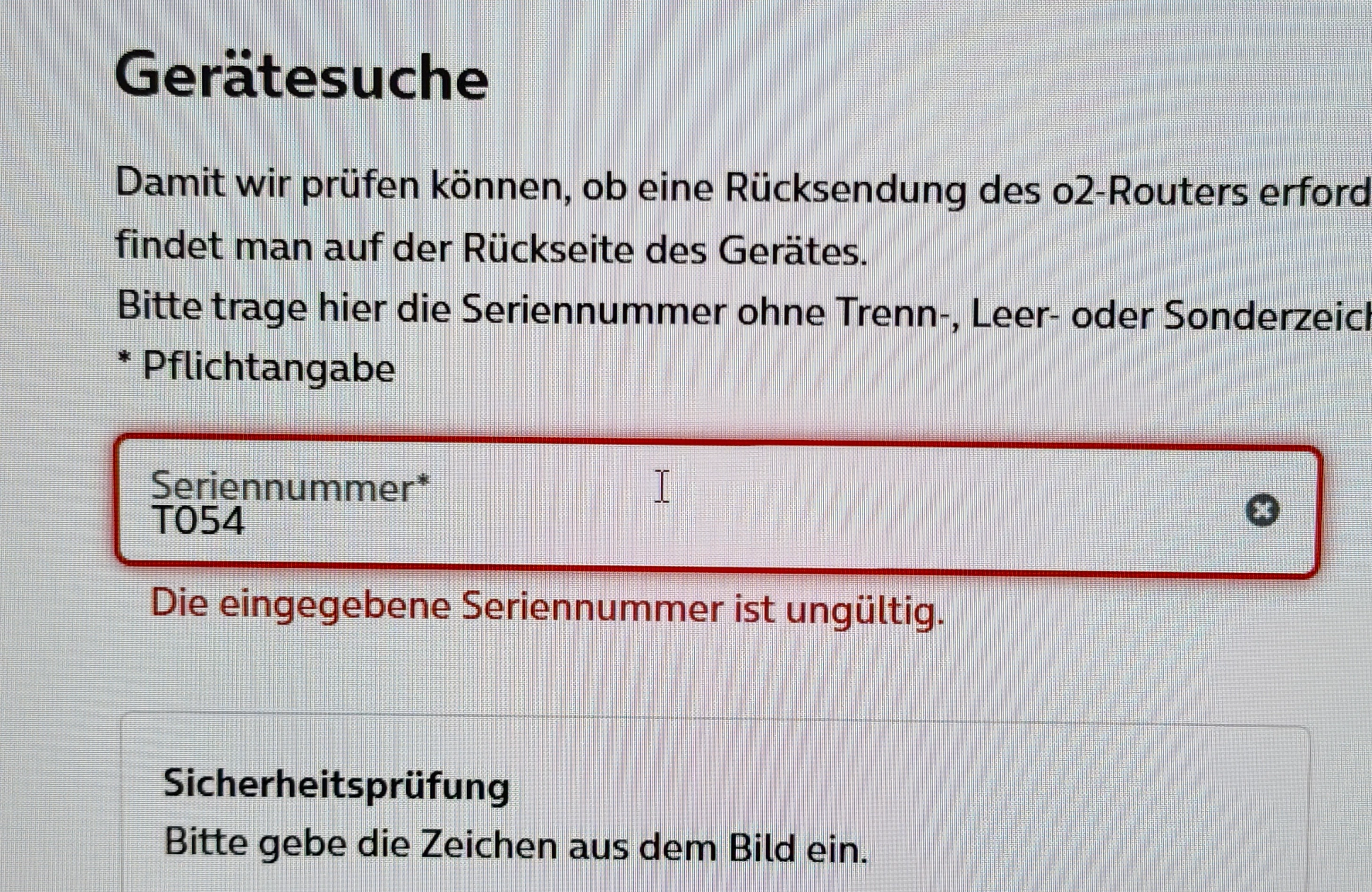 Dann tippe doch mal die Nummer vollständig ein und fülle das Feld “Sicherheitsprüfung” aus. Eine Seriennummer mit nur 4 Stellen wäre offensichtlich falsch.