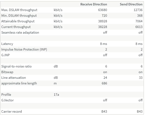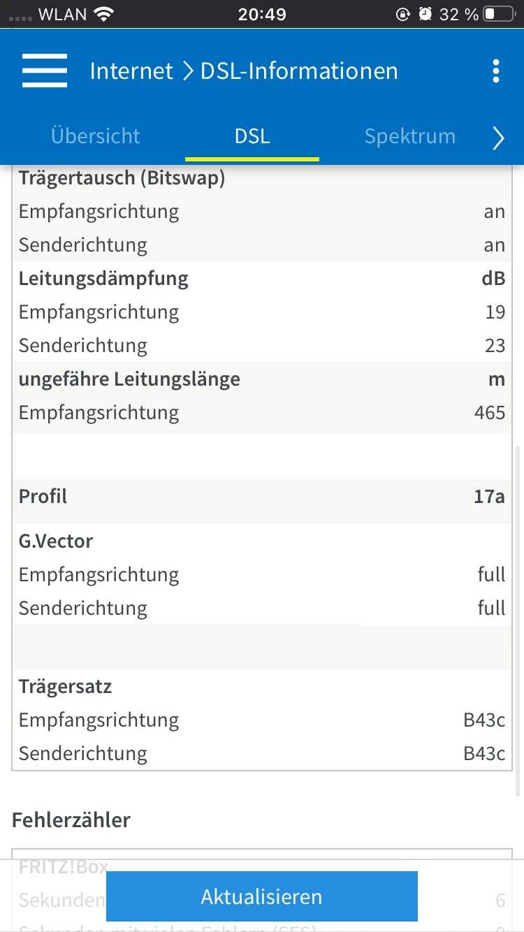 Sehr interessant. Da wurde das Profil erhöht, aber du bist weiterhin indoor geschaltet ohne Vectoring. :)