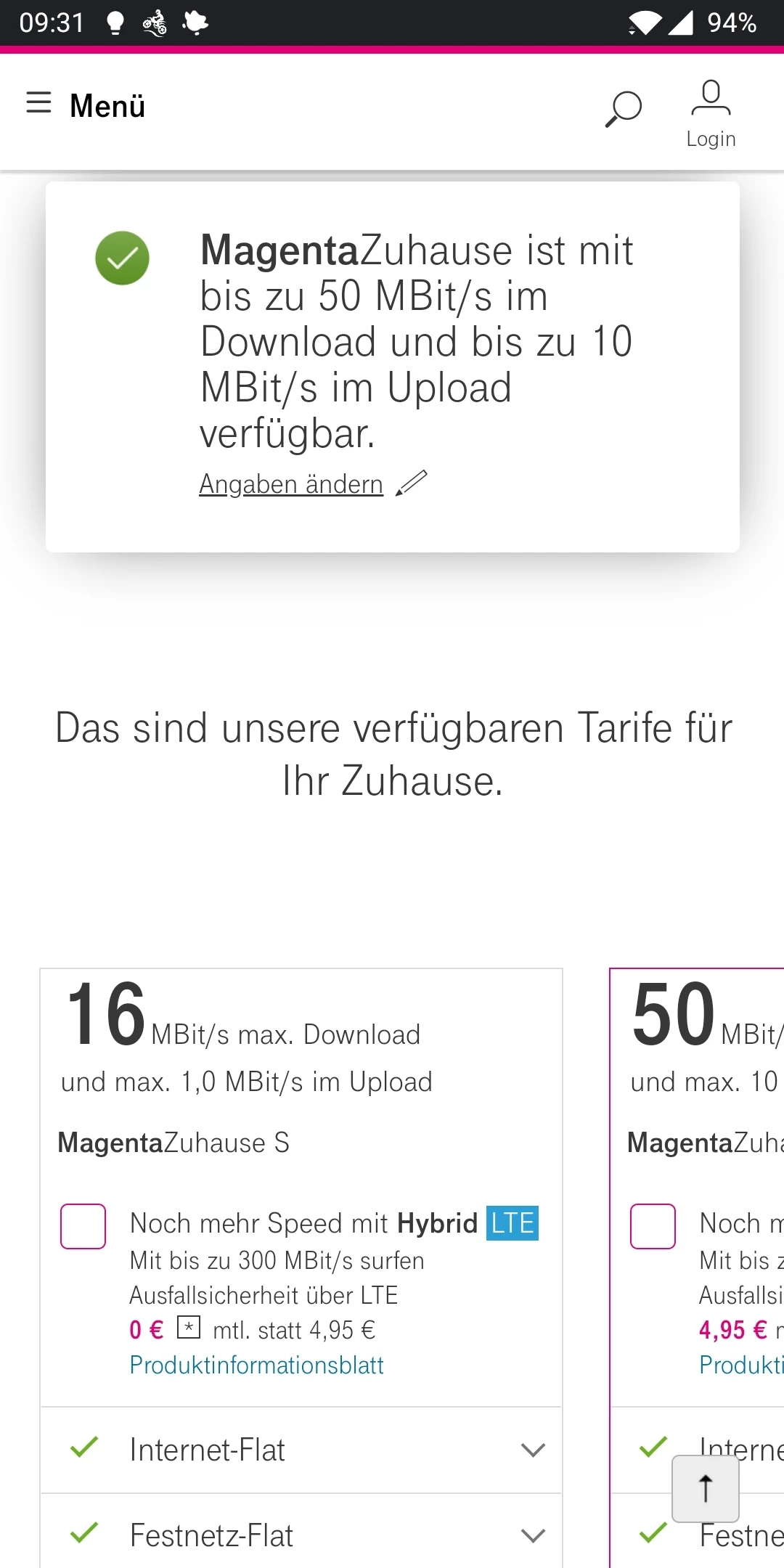 Mach doch mal bei der Telekom eine Verfügbarkeitsprüfung, was an deiner Adresse verfügbar ist. Steht bei “50 MBit/s” das Wort “demnächst verfügbar”, ist das ein Zeichen, dass die Telekom aktuell deinen Nahbereich ausbaut.