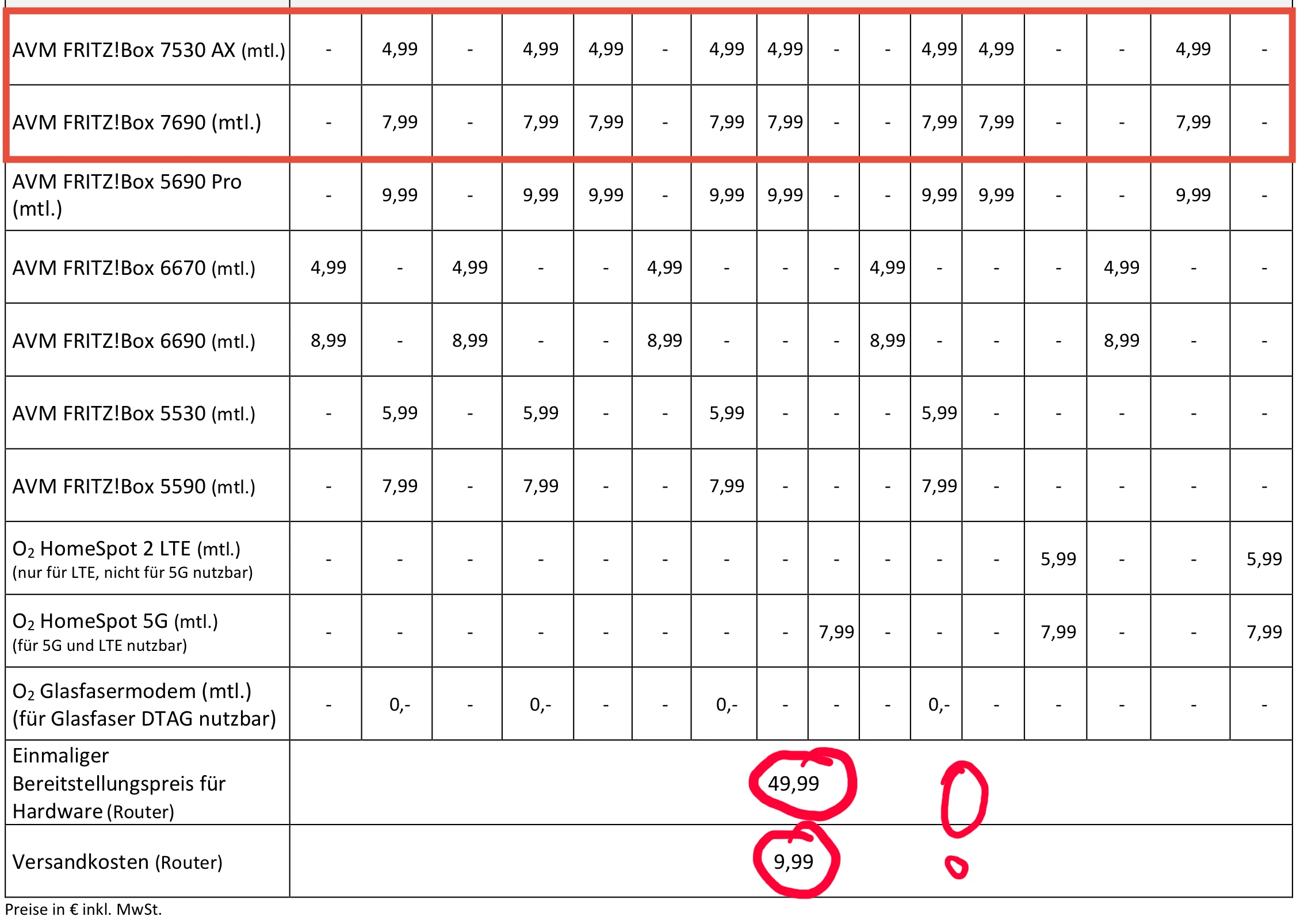 Das sind die aktuellen Preise für die Router bei o2 :